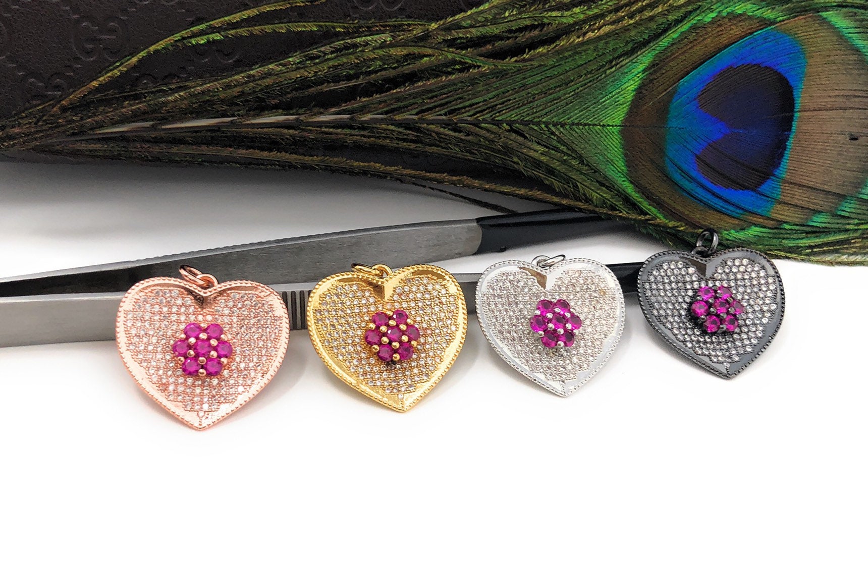 CZ Micro Pave Heart Charms, Jewelry Supplies for DIY Jewelry, Love Charms, CZ Charms in Gold Plated/Silver Plated/Rose Gold/Gun metal