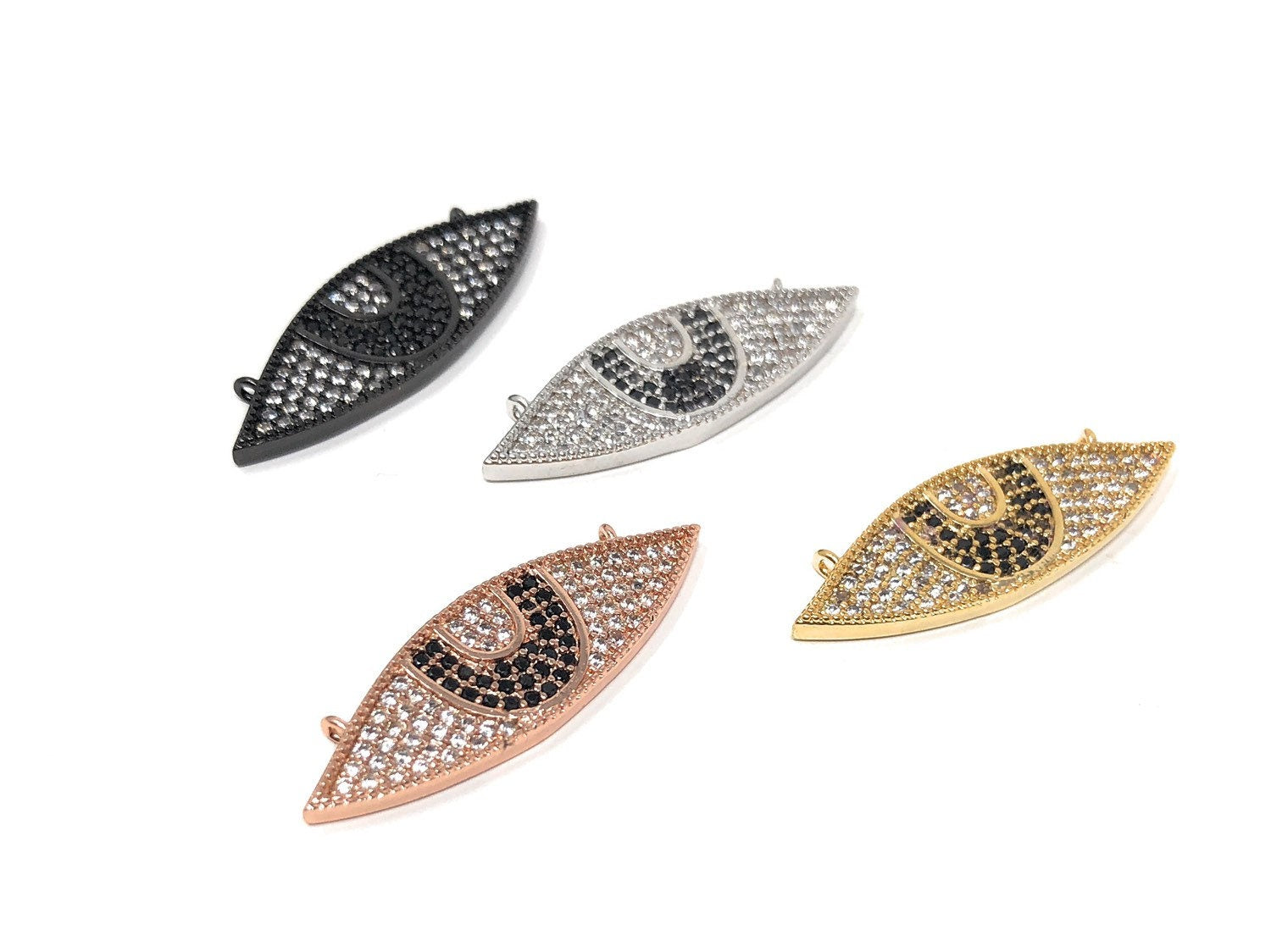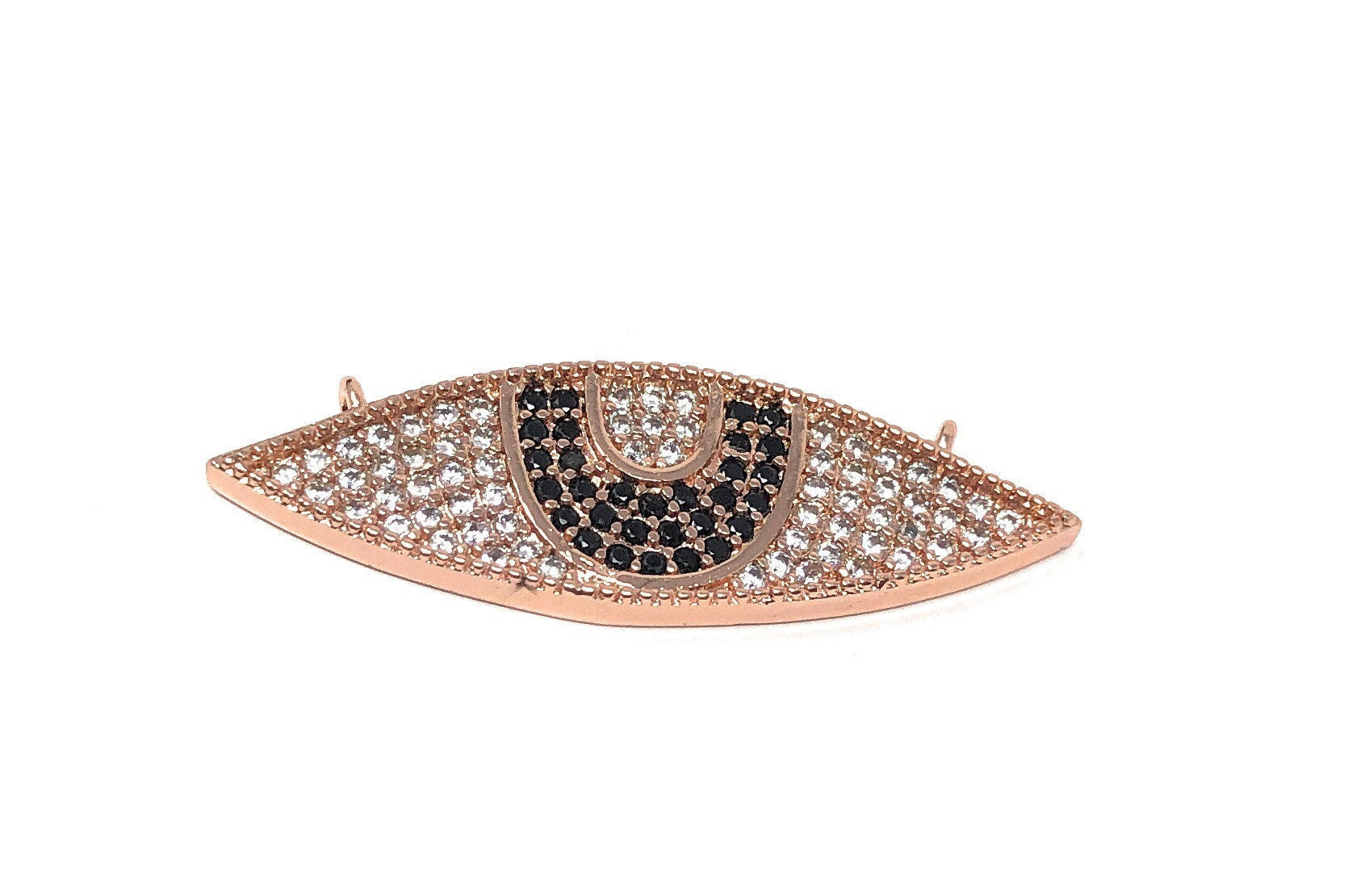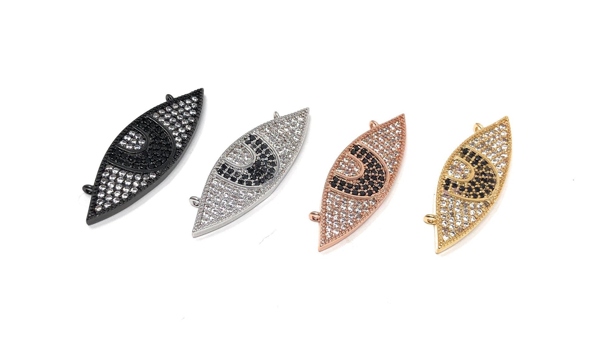 This Beautiful Micro Pave AAA Cubic Zirconia Horse Eye Evil Eye Connector is an excellent choice for making Bracelets, Necklaces or any Creative Jewelry Piece.