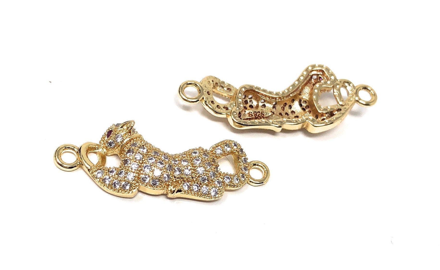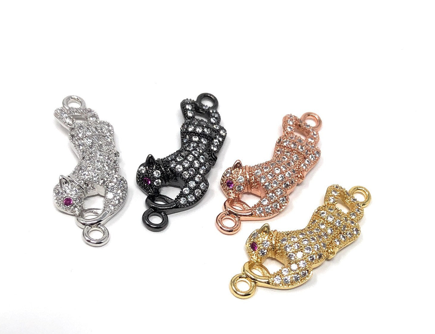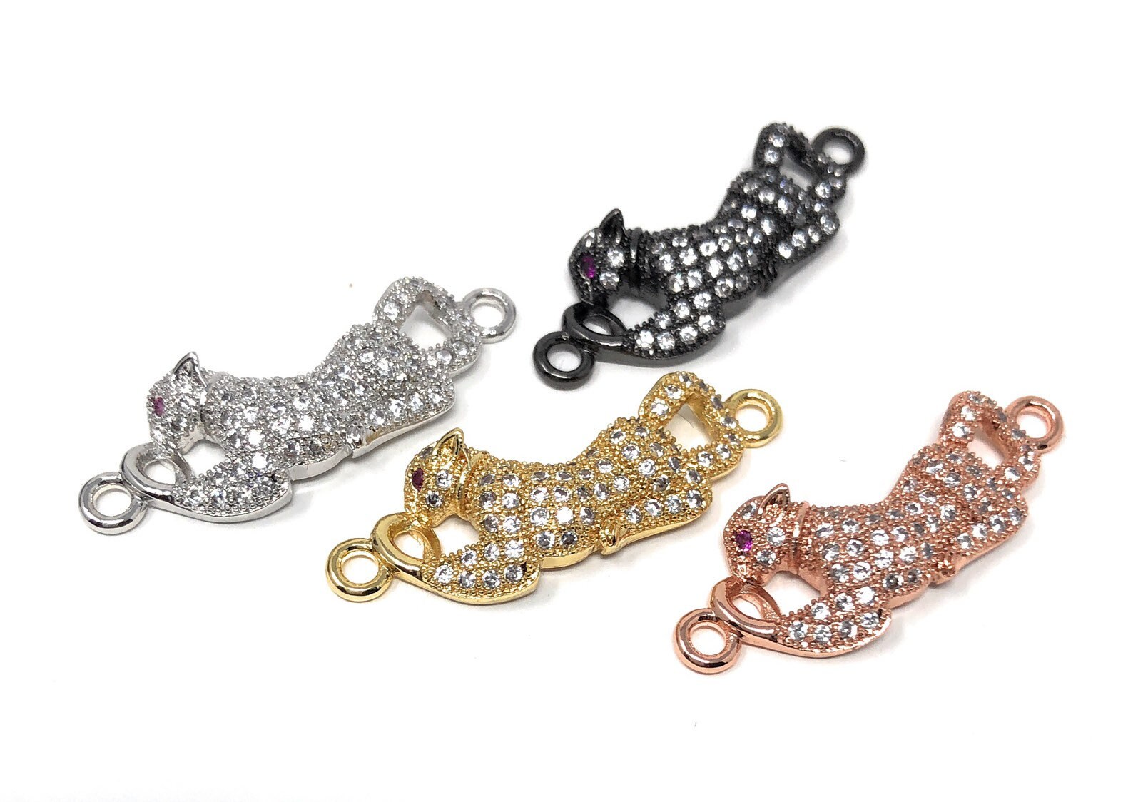 CZ Micro Pave Leopard Connector, Pave Findings, CZ Pave Link Charm Connectors, Jewelry Findings, Jewelry Supplies, DIY Jewelry Making, 1 Pc