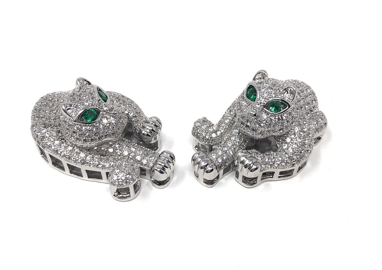 CZ Micro Pave Leopard Link, Leopard Findings, Leopard Pendant, CZ Pave Pendant, Jewelry Findings, Jewelry Supplies, CZ Multi Strand Link