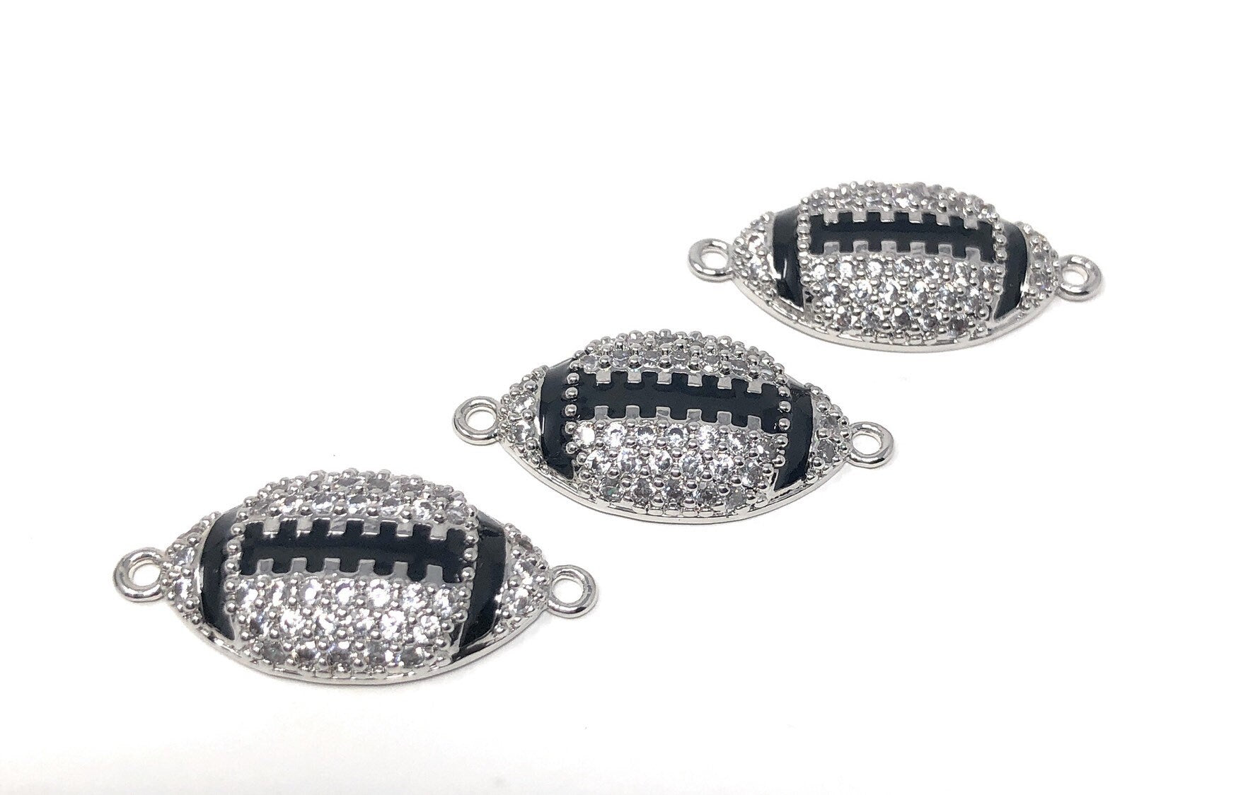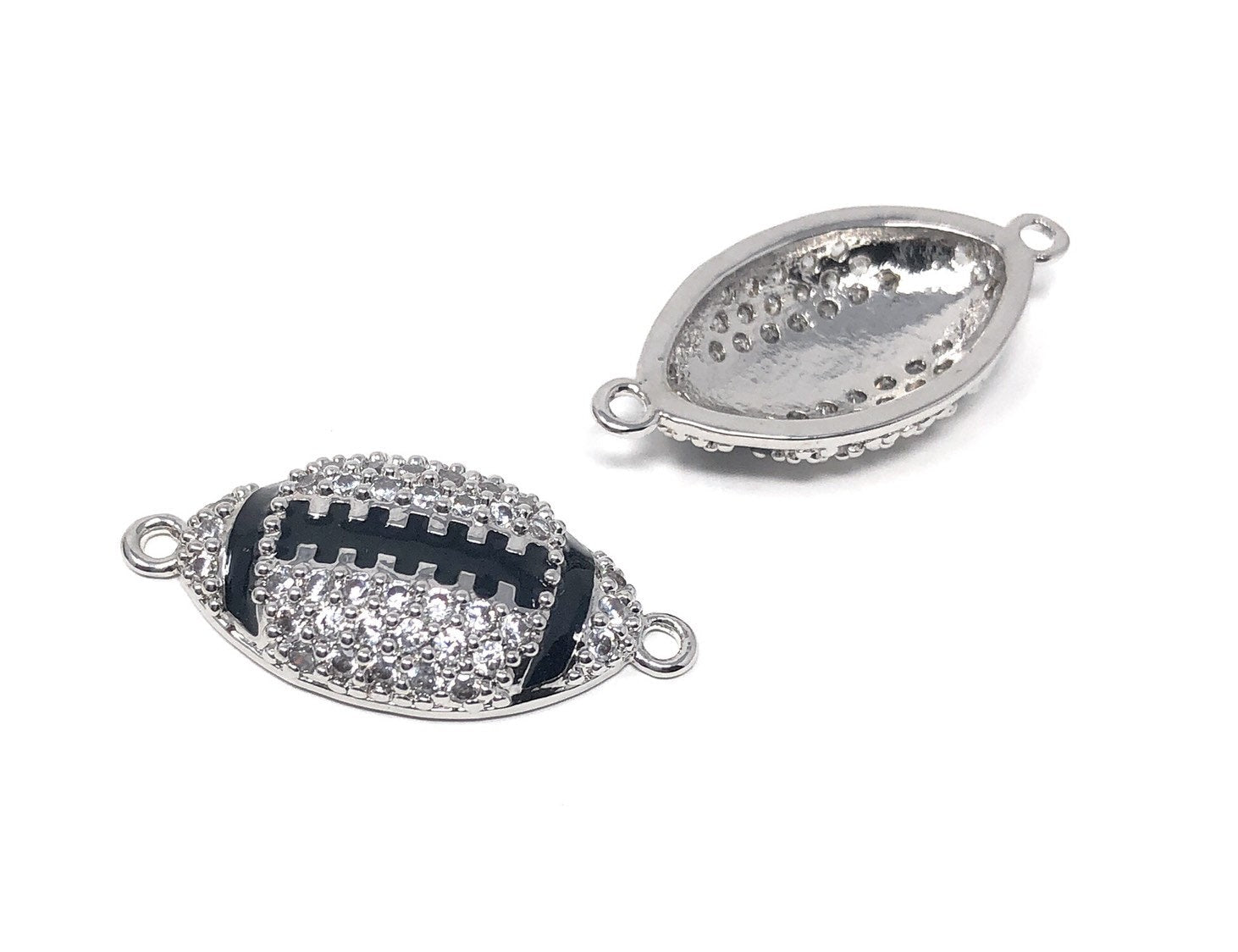 CZ Micro Pave Rugby Enamel Connector, Pave Findings, Pave Connectors, Jewelry Findings, Jewelry Supplies for DIY Jewelry Making, 1 Pc