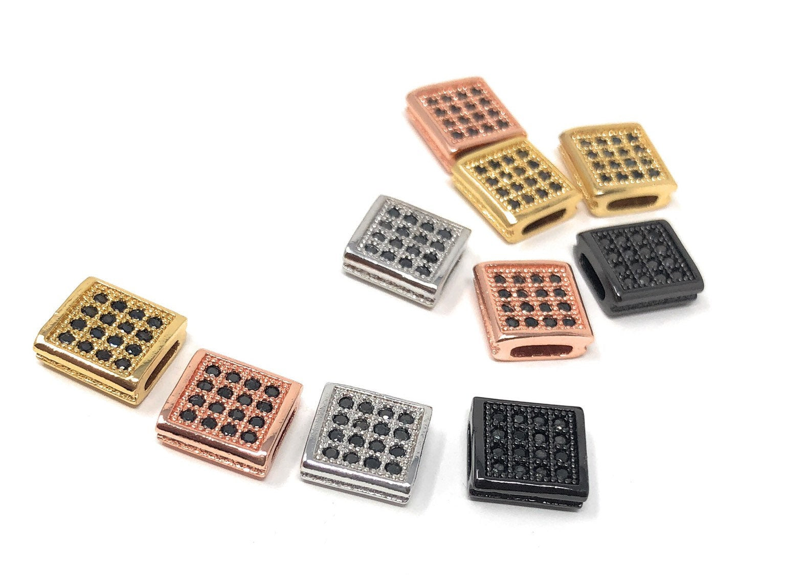CZ Micro Pave Square Beads, Pave Beads, Spacer Beads, CZ Bulk Beads, Pave Spacer Beads, Jewelry Findings for DIY Jewelry Making, 1 Pc
