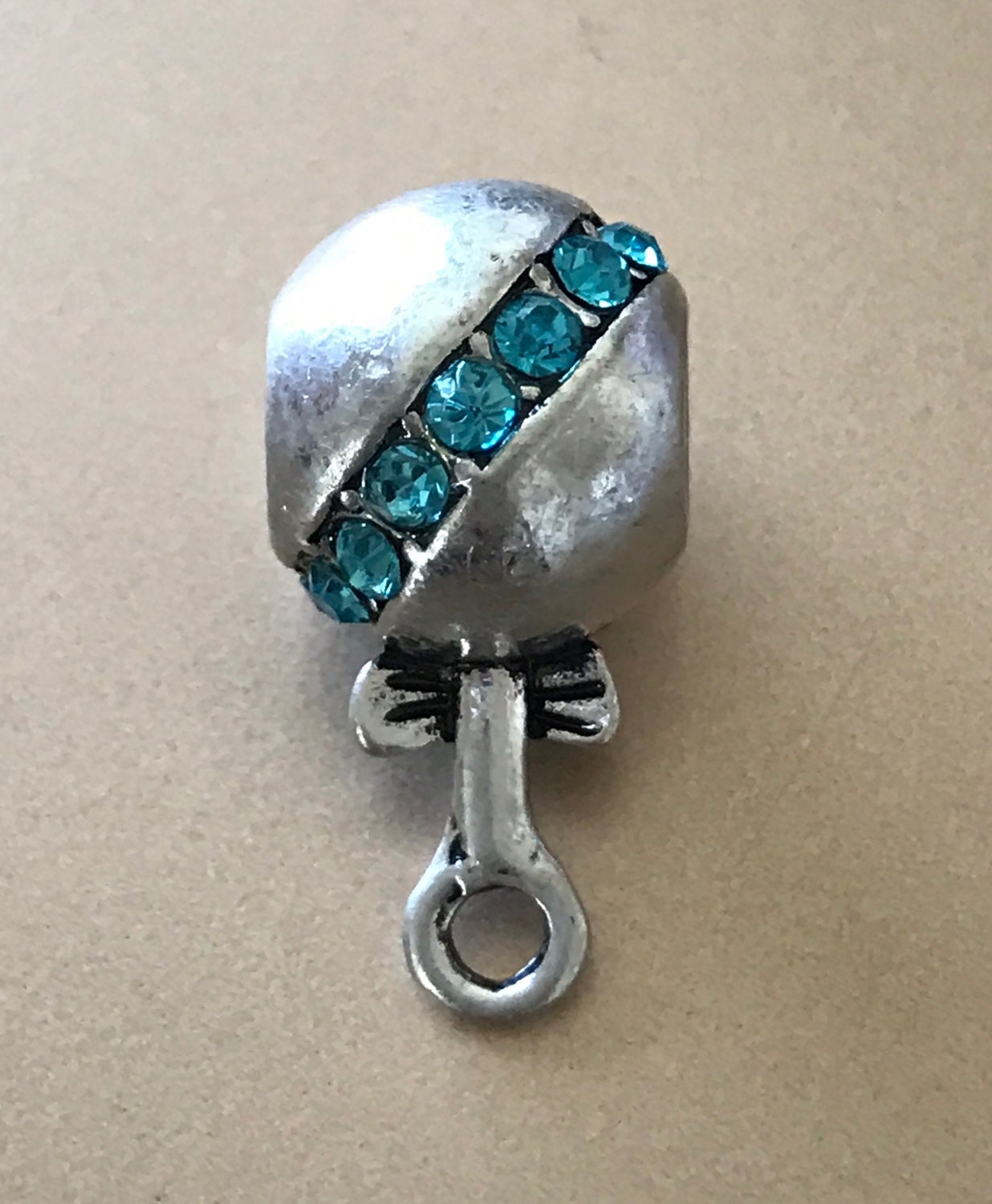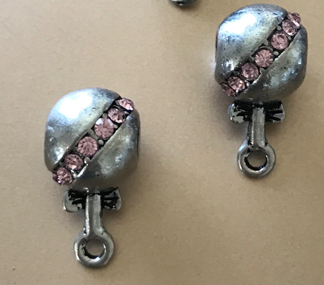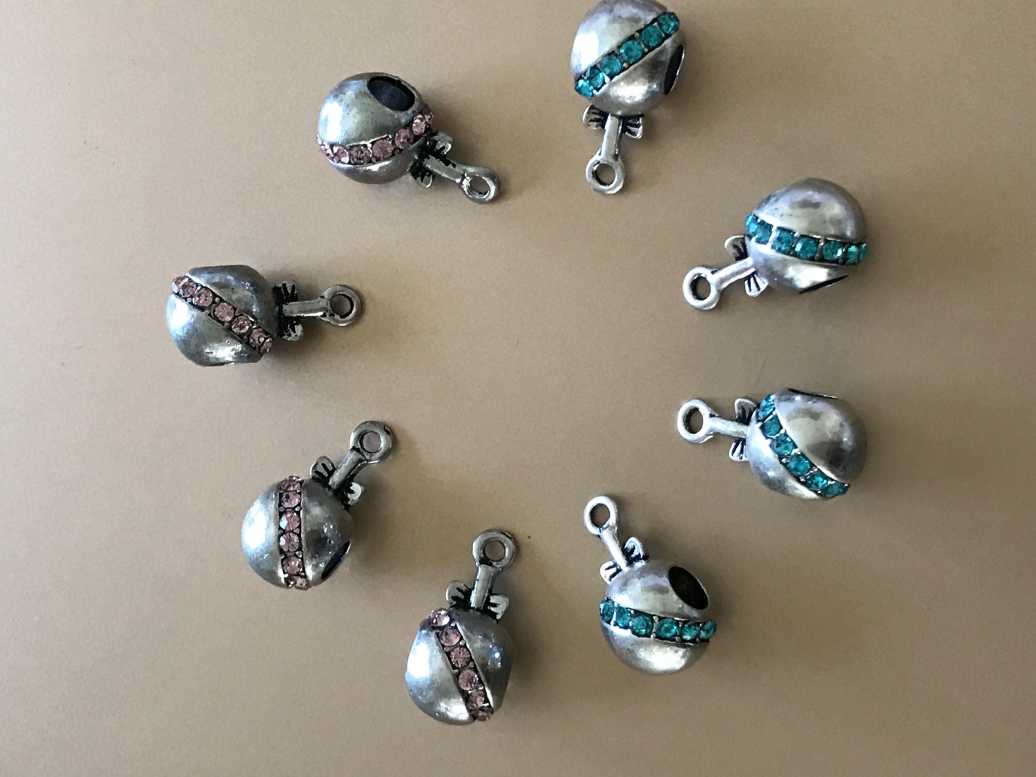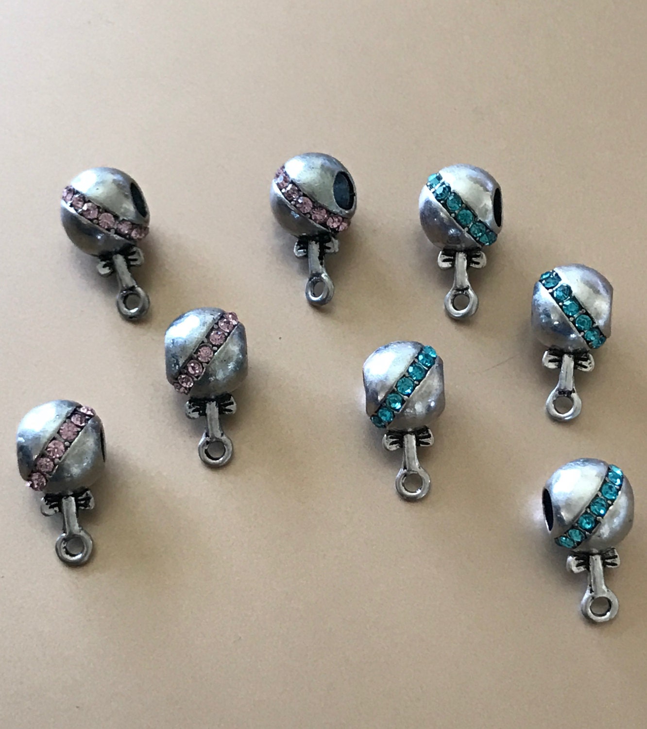 European Style Bails Beads in Antique Silver with Blue Rhinestone and Pink Rhinestone.