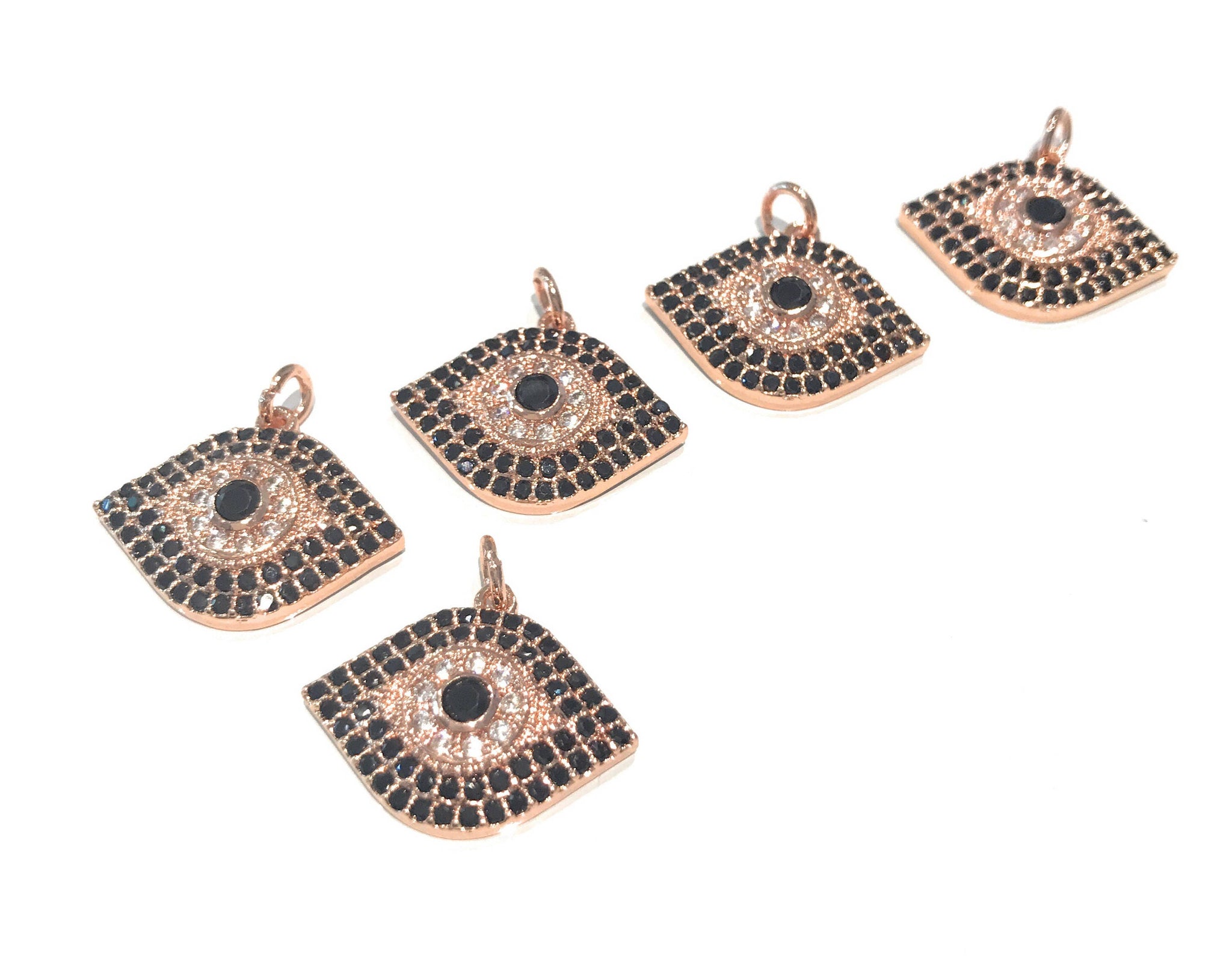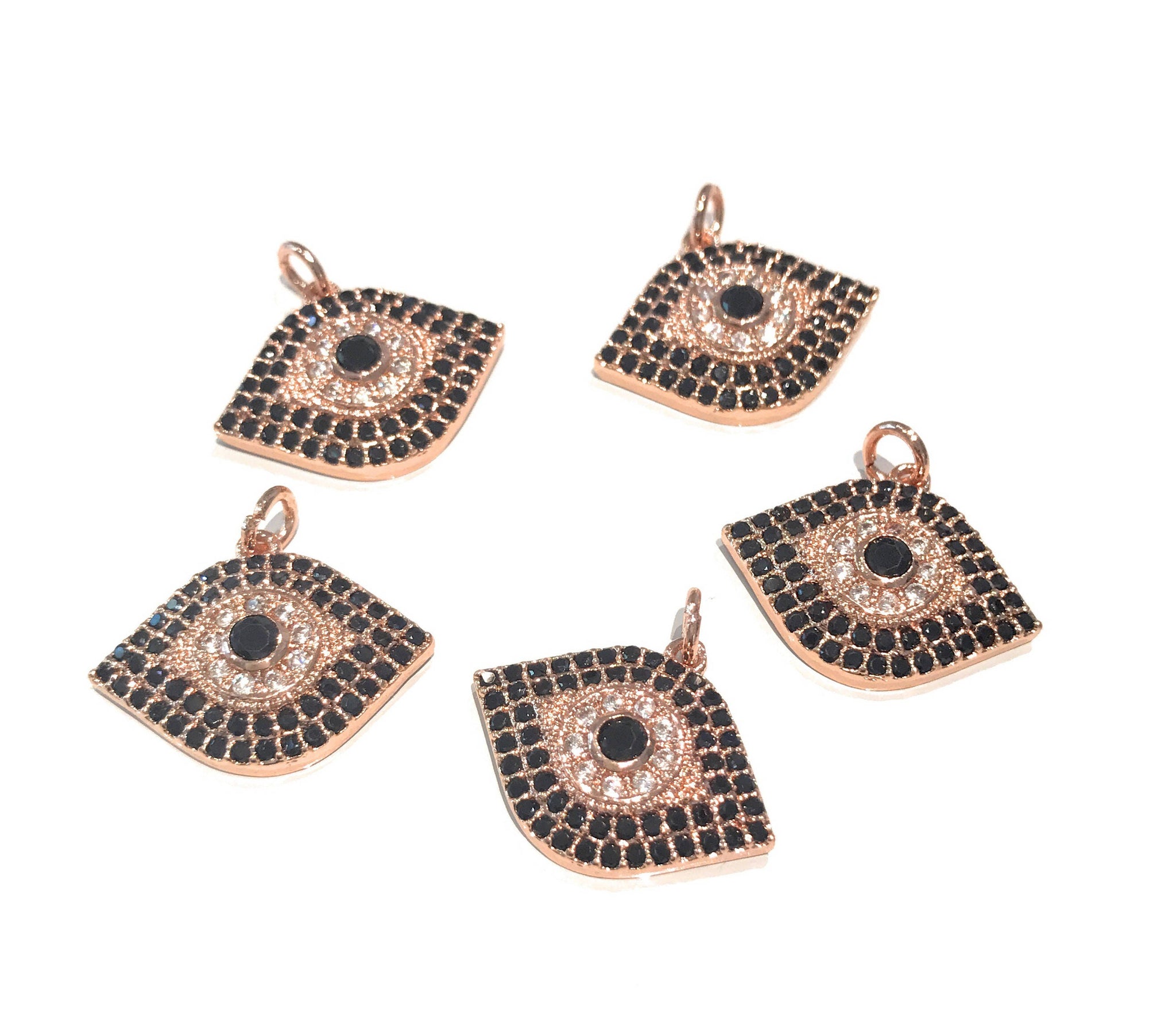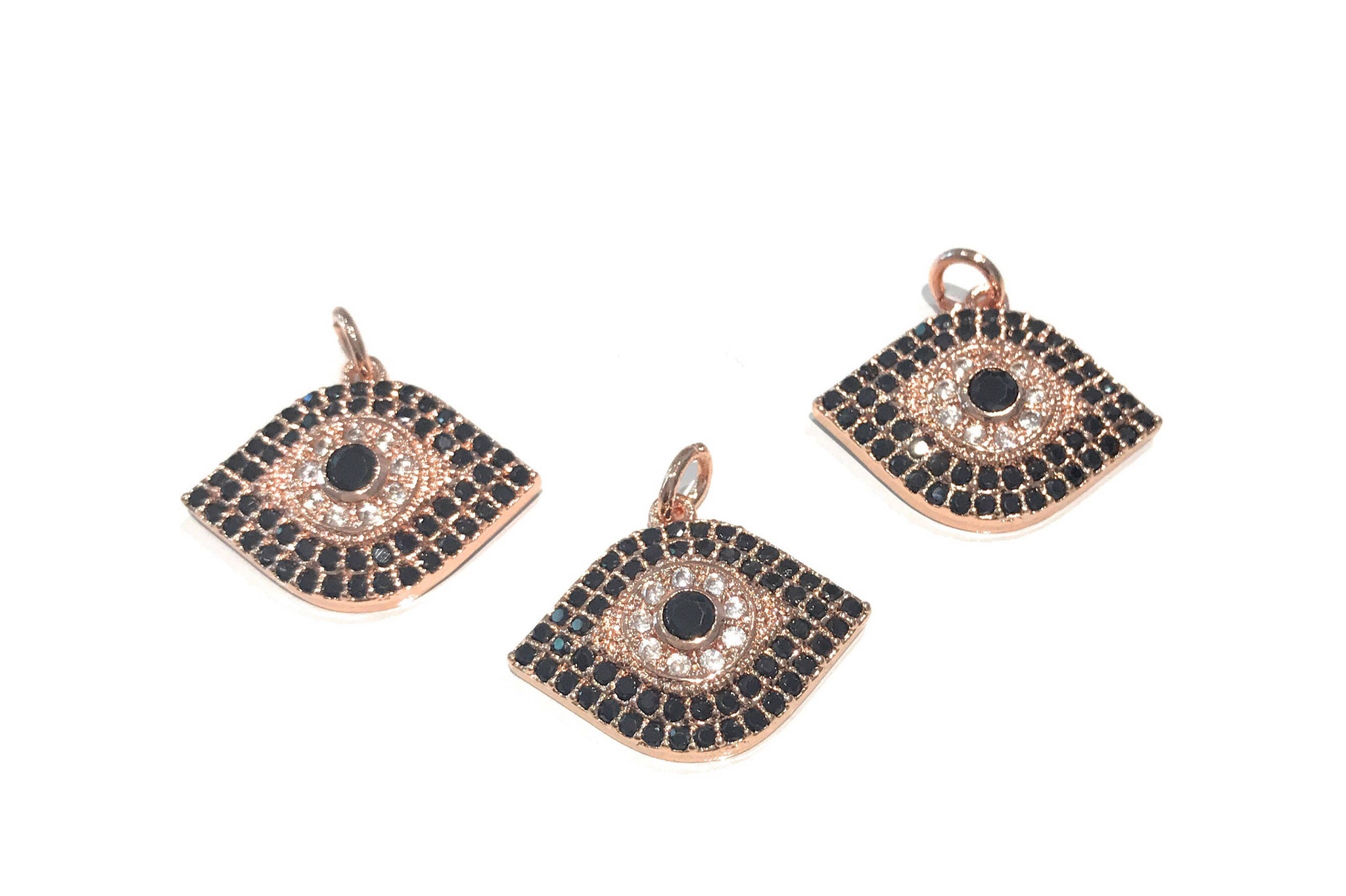 CZ Micro Pave Rose Gold Plated Evil Eye Protection Charm for Jewelry Making at Wholesale Price.