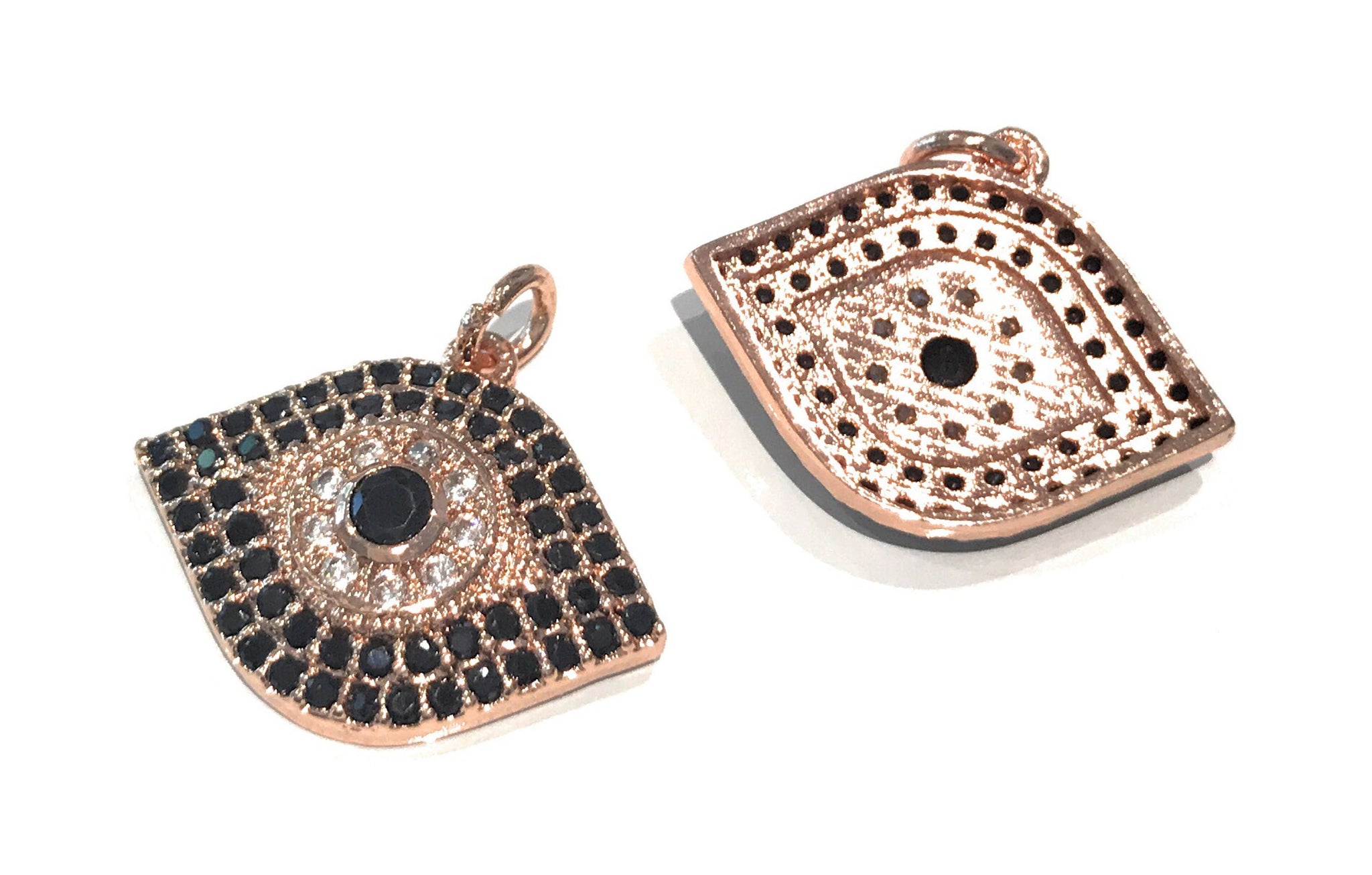This Beautiful CZ Micro Pave Rose Gold Plated Evil Eye Protection Charm is an excellent choice for making Charm Bracelet, Necklace or a beautiful pair of Earrings.