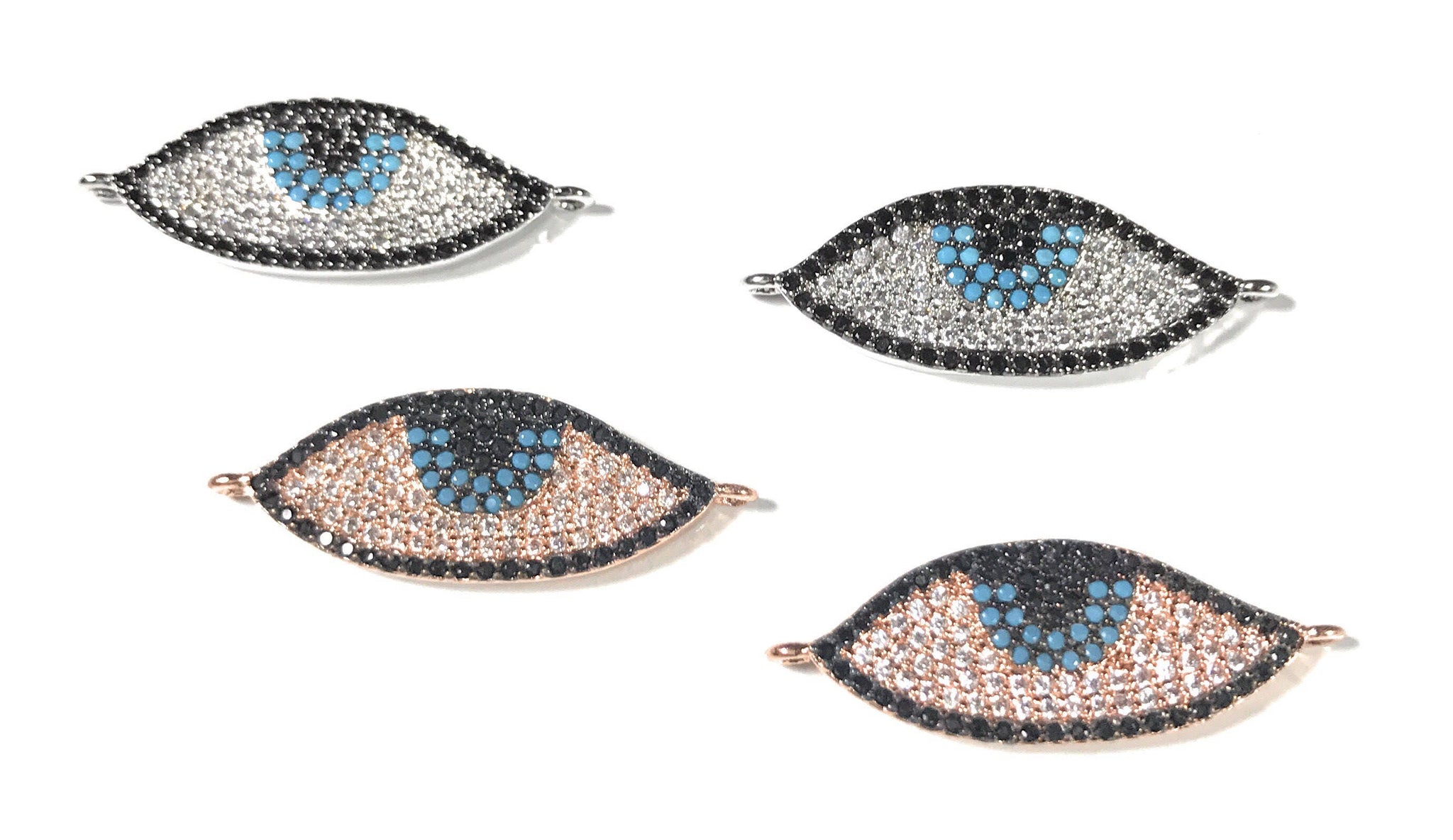 This Beautiful CZ Micro Pave Lucky Horse Eye Link/Connector is an excellent choice for making Bracelets or any Creative Jewelry Piece.