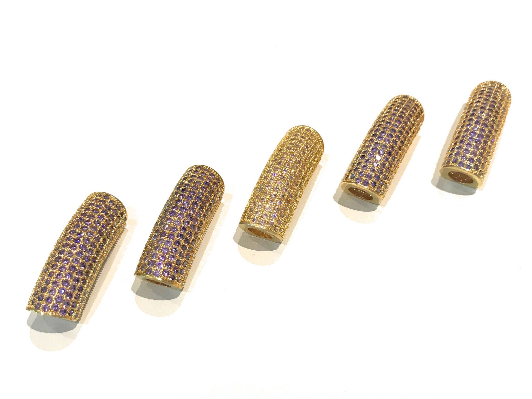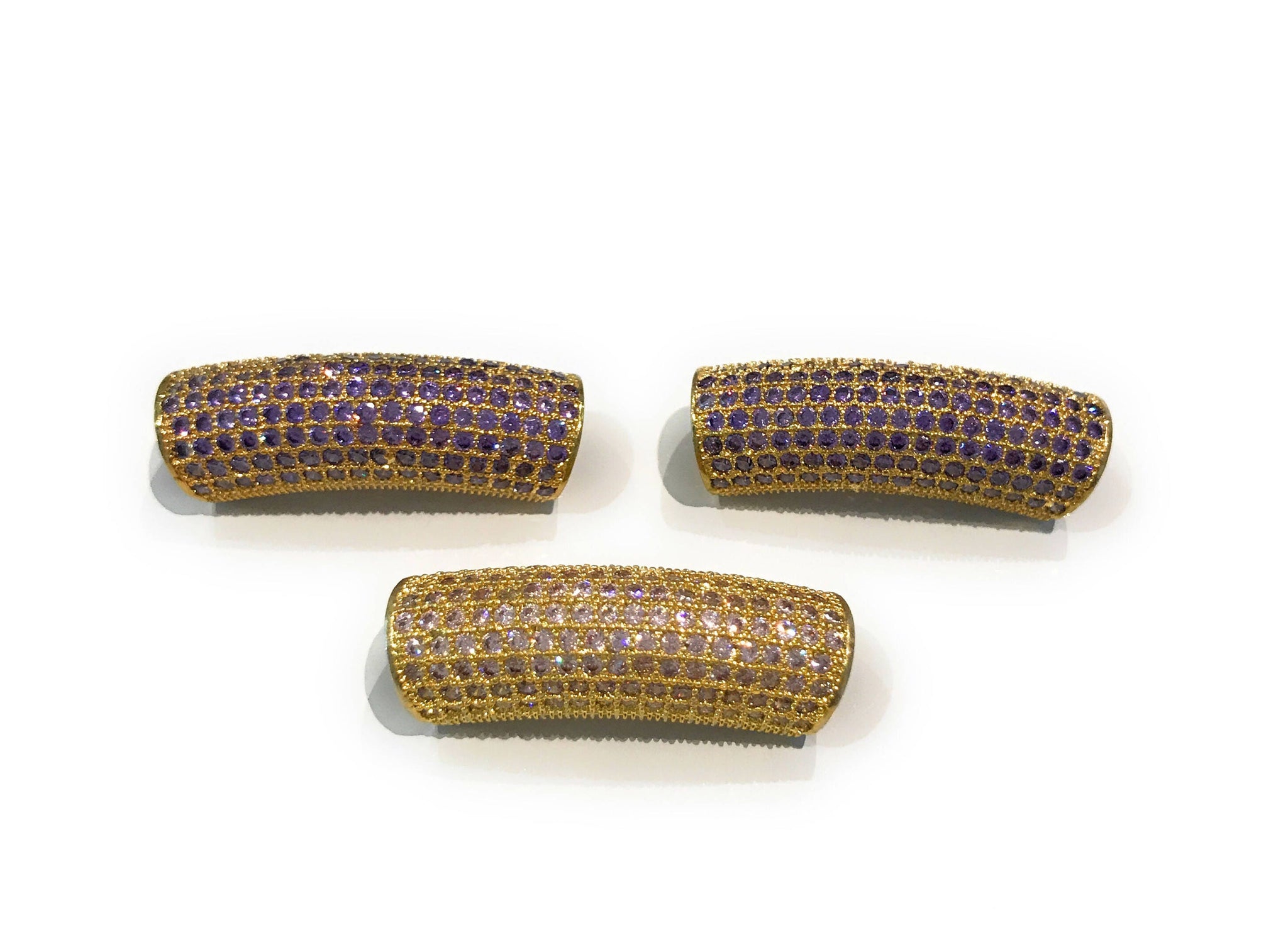 Gold Plated Micro Pave CZ Curved Tube Slider Beads for Jewelry Making at Wholesale Price.