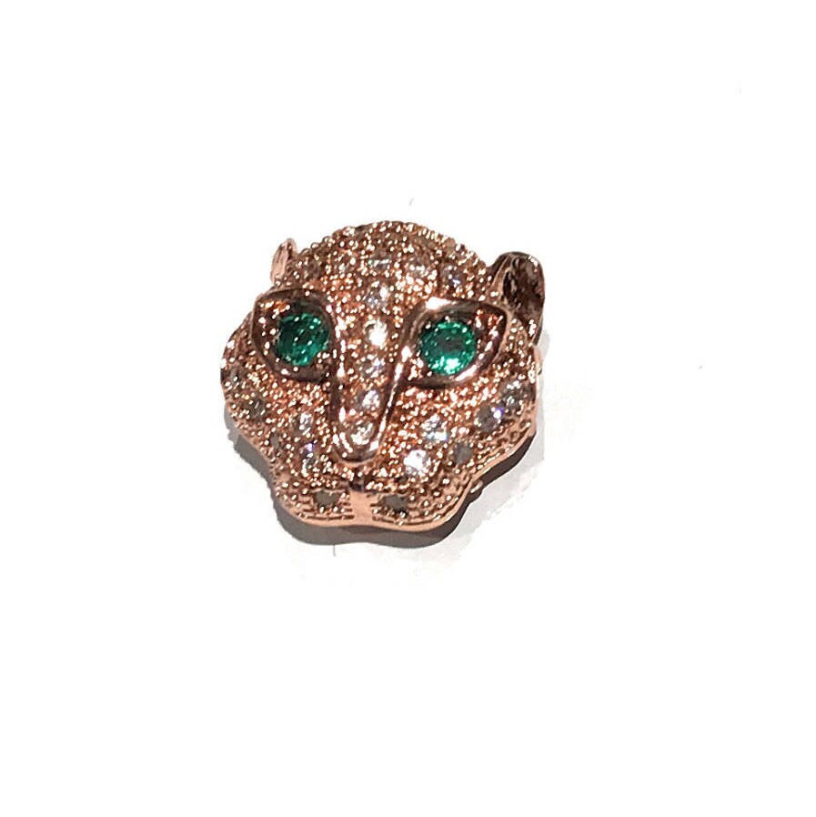 This Beautiful 24K Rose Gold / Gold Plated CZ Micro Pave Leopard Head Bead is an excellent choice for any Bracelet, Necklace and Anklet Design. It is a perfect Finding for any Jewelry Design.