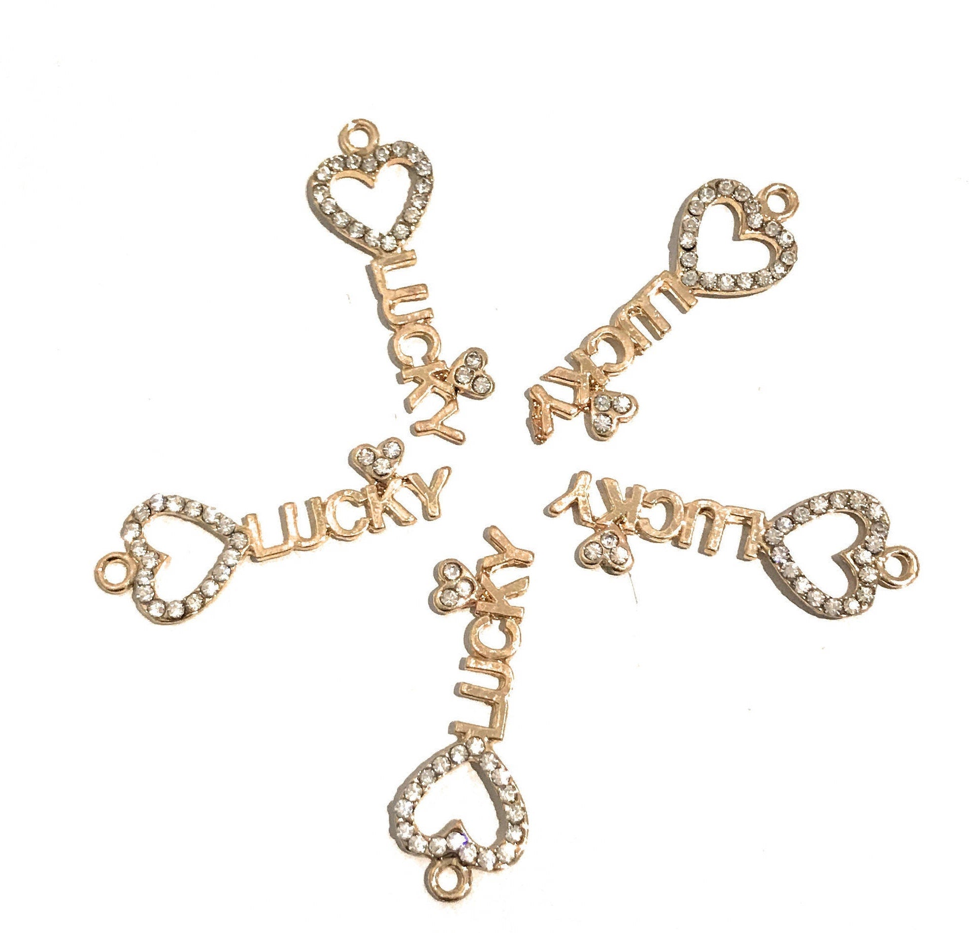 Lucky Charm, Word Charms, Heart Charm, Key Charm, Heart Key Charm, Jewelry Findings, Bulk Charms, Wholesale Charms, Gold Charms, DIY Jewelry