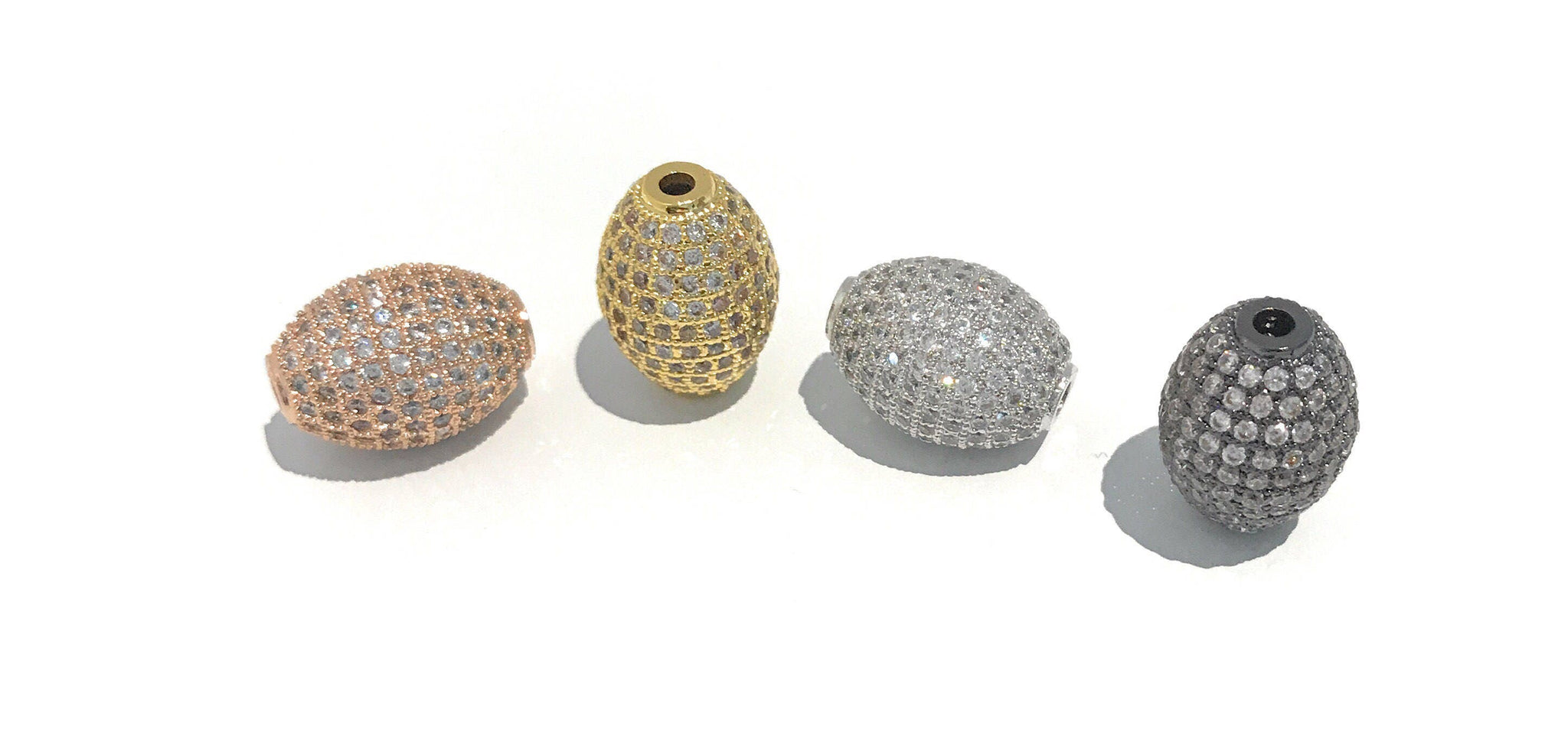 Oval Beads, Micro Pave Beads, CZ Pave Beads, Pave Spacer Beads, DIY Jewelry, Jewelry Findings, Egg Beads, Pave Beads, 16x11.5mm, 1 Piece