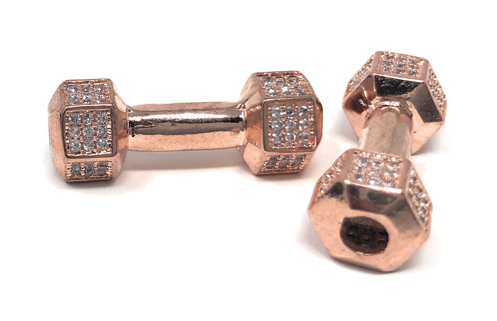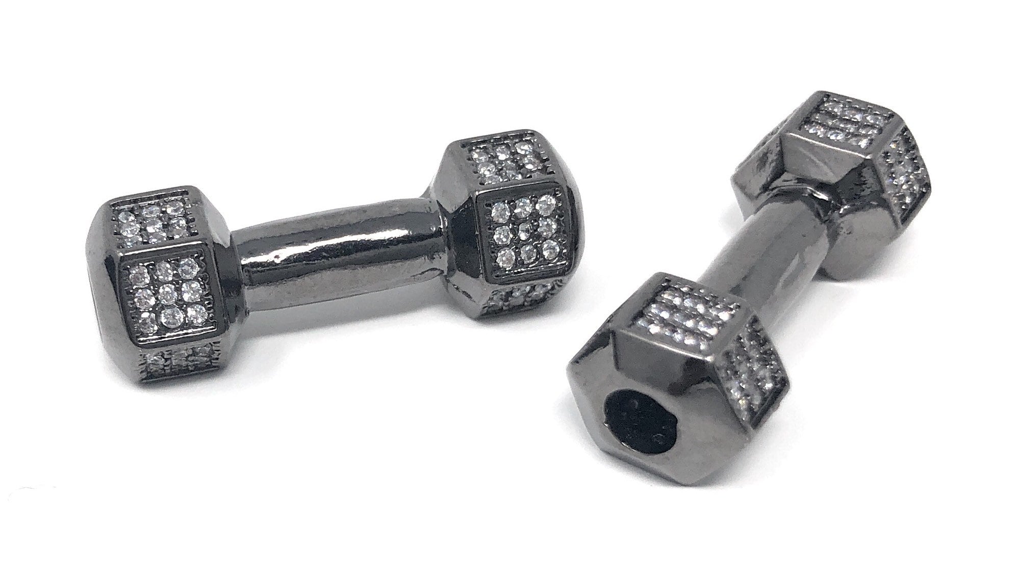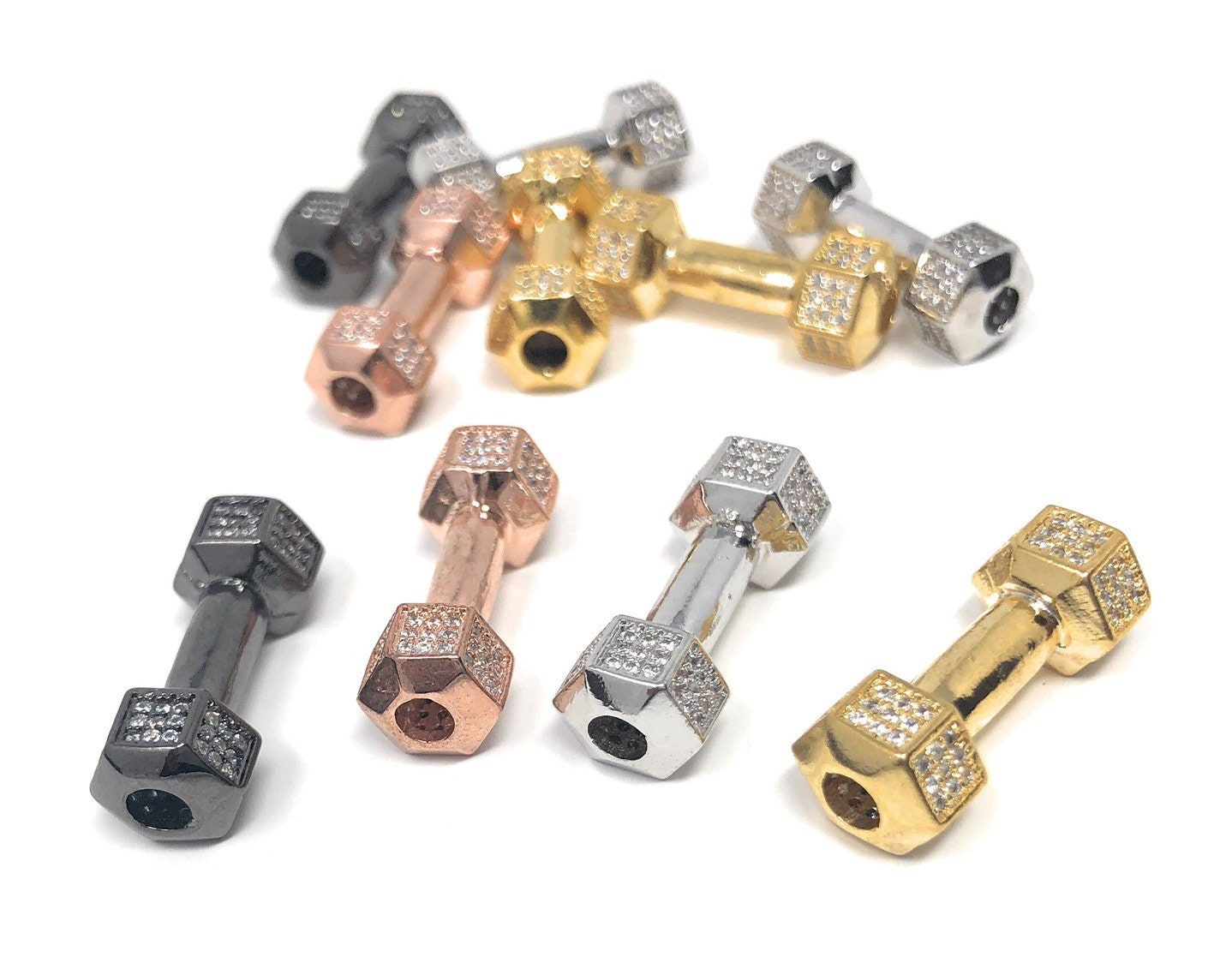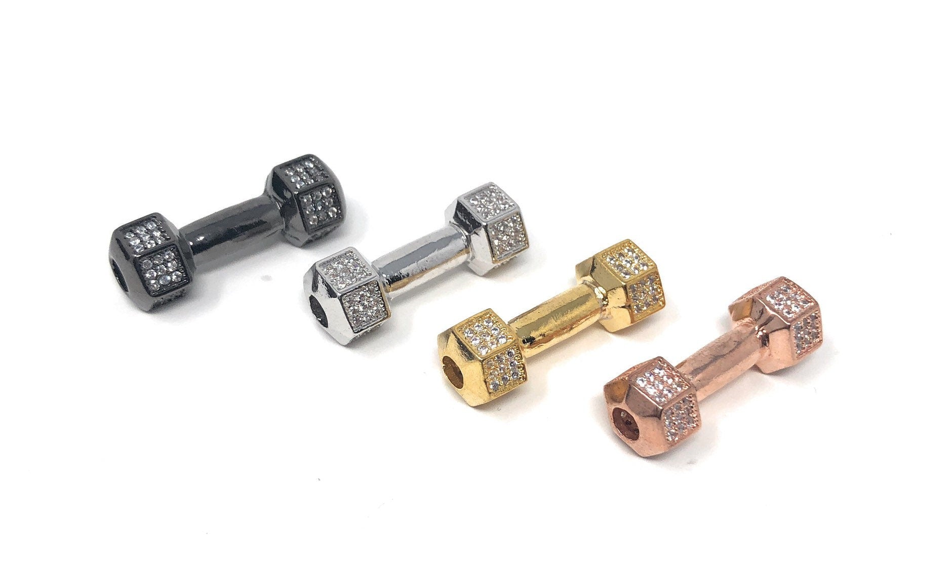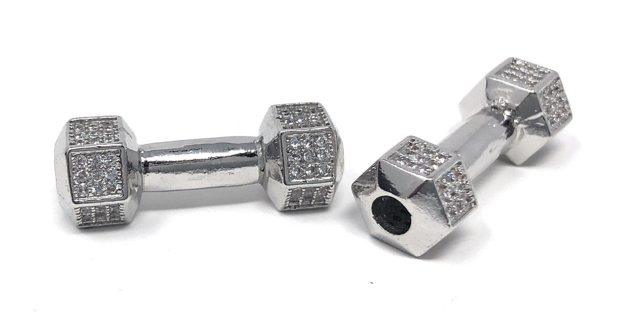 CZ Micro Pave Fitness Dumbbell Connector Beads, Jewelry Supplies for DIY Jewelry Making at Wholesale Price.