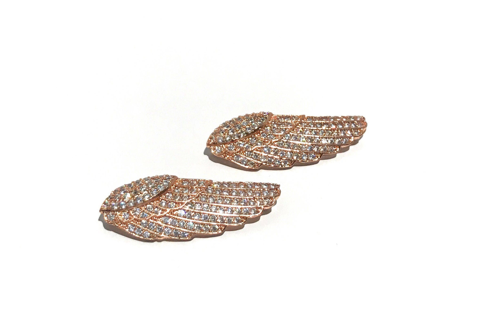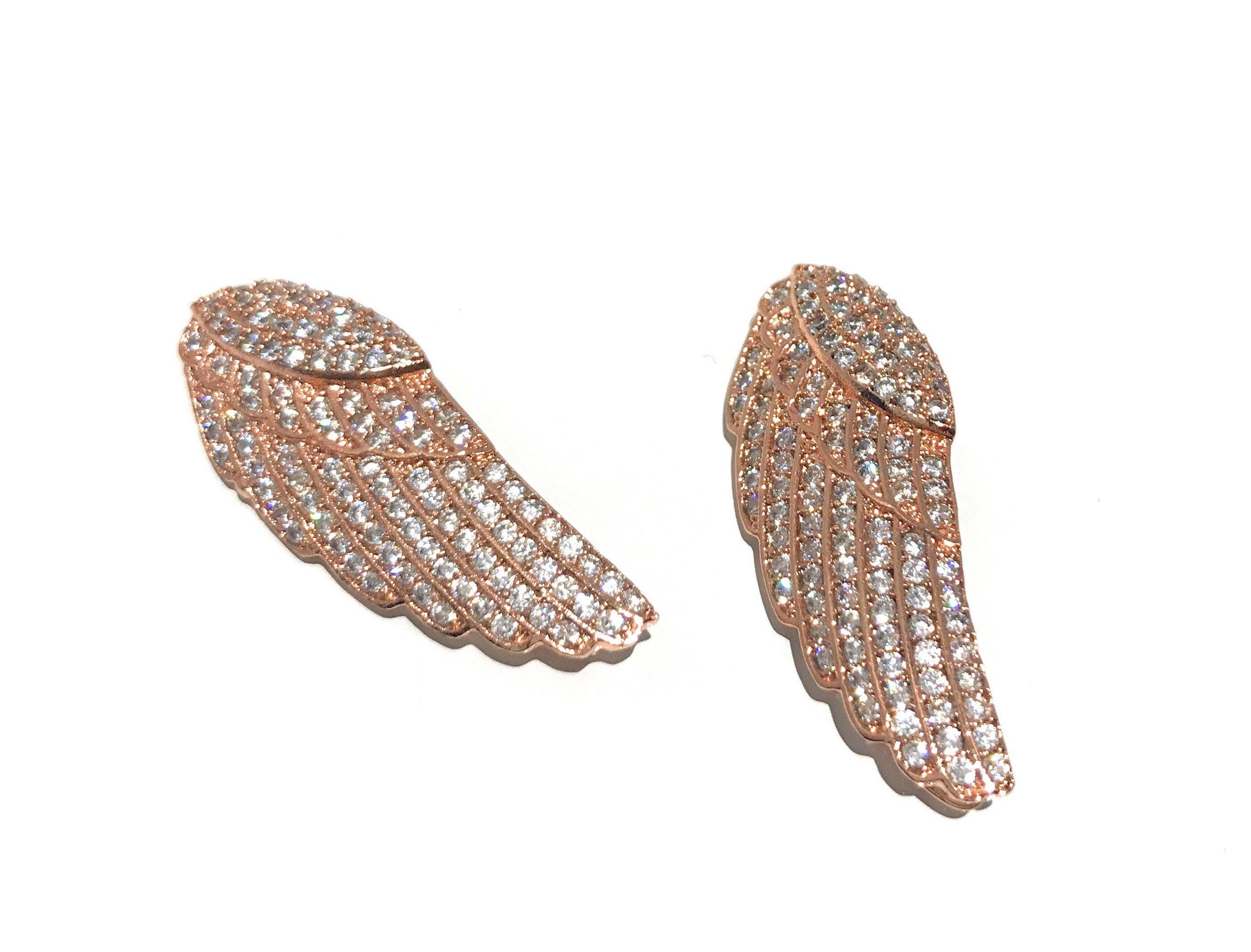 This Beautiful Large Size CZ Rose Gold Micro pave Feather / Wing Jewelry Connector can be used to make gorgeous Bracelet , Necklace, Pendant Necklace or eye catching set of Earrings.