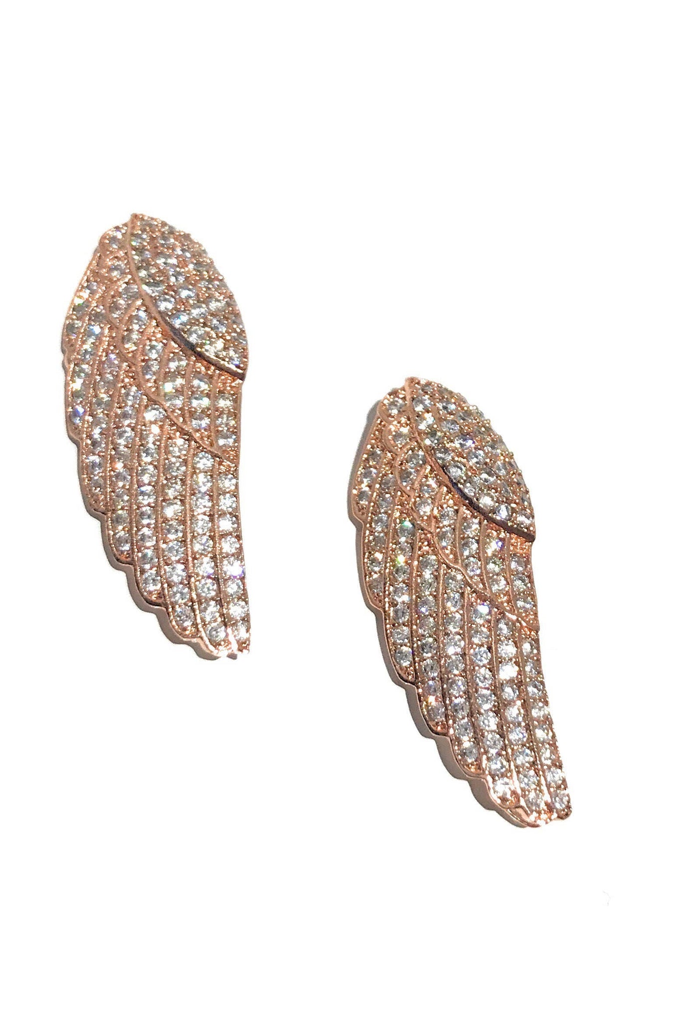 Large Size CZ Micro pave Rose Gold Wing / Feather Sideways Jewelry Connector for Jewelry Making at Wholesale Price.