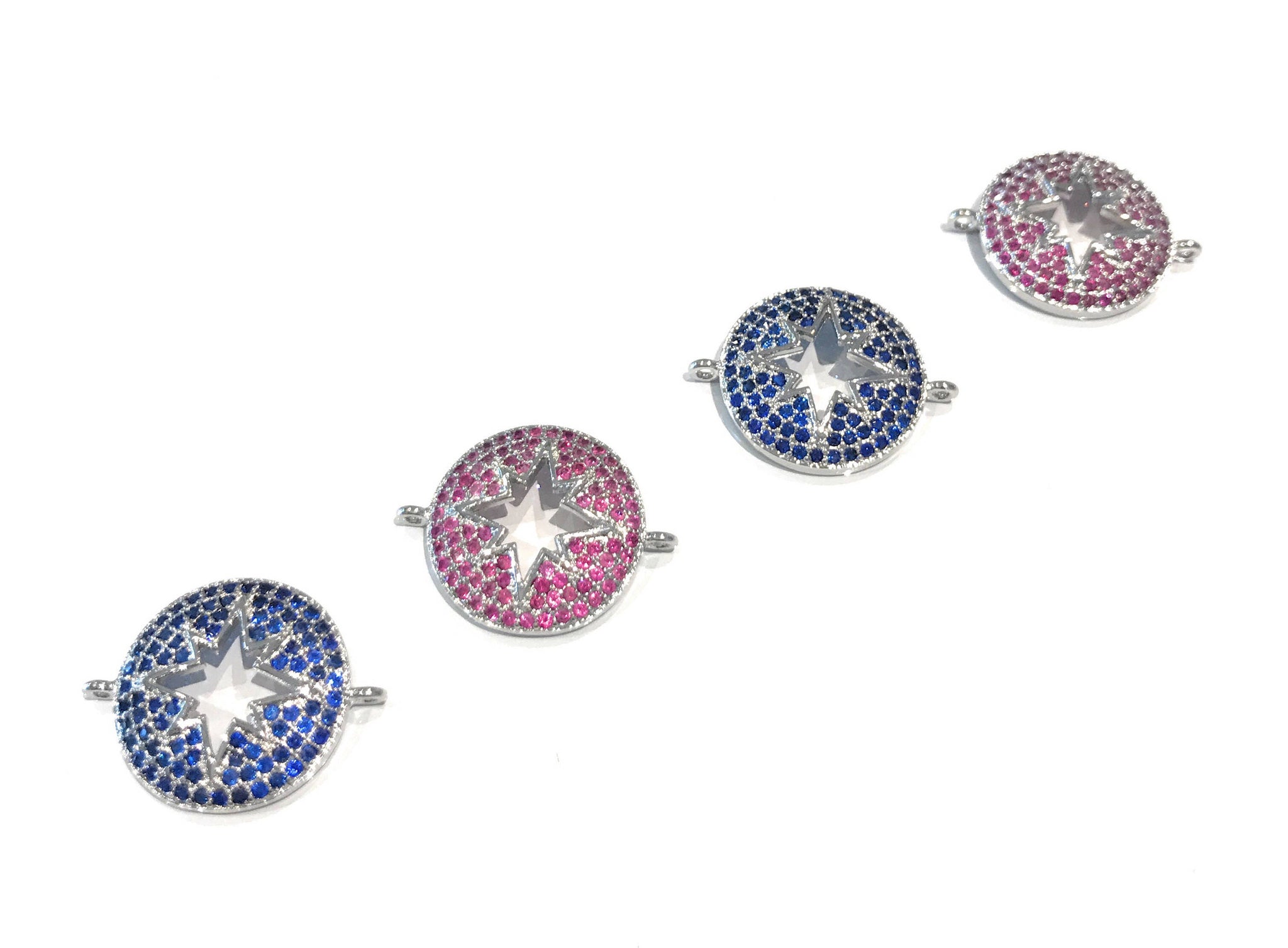 This Beautiful Platinum Plated CZ Micro Pave Star Connector in Fancy Camellia and Blue Color is an excellent choice for making Bracelets, Necklaces or any Creative Jewelry Piece.