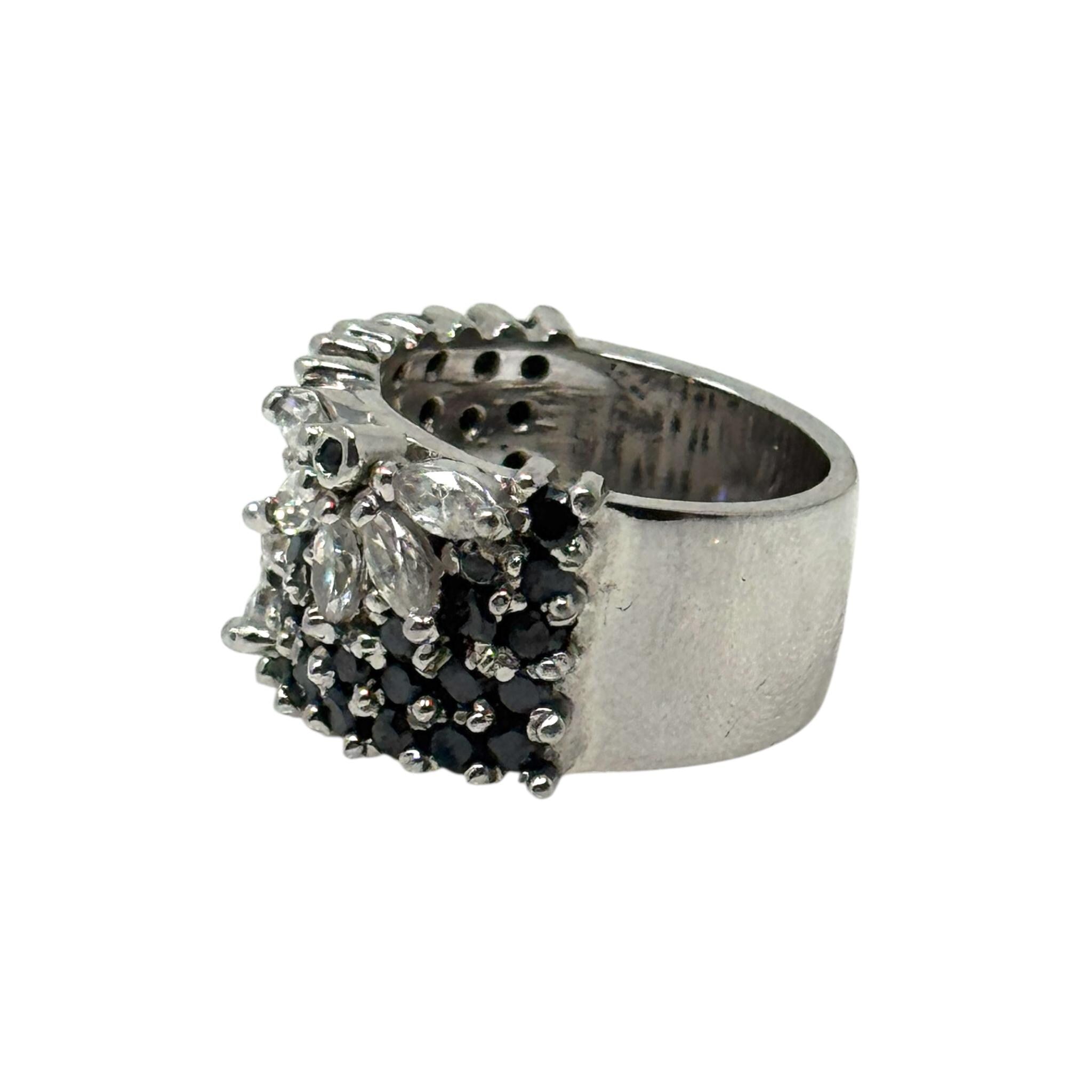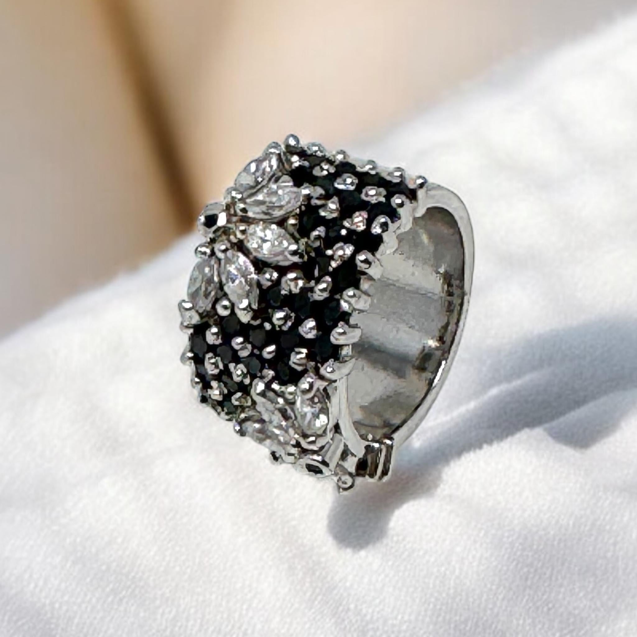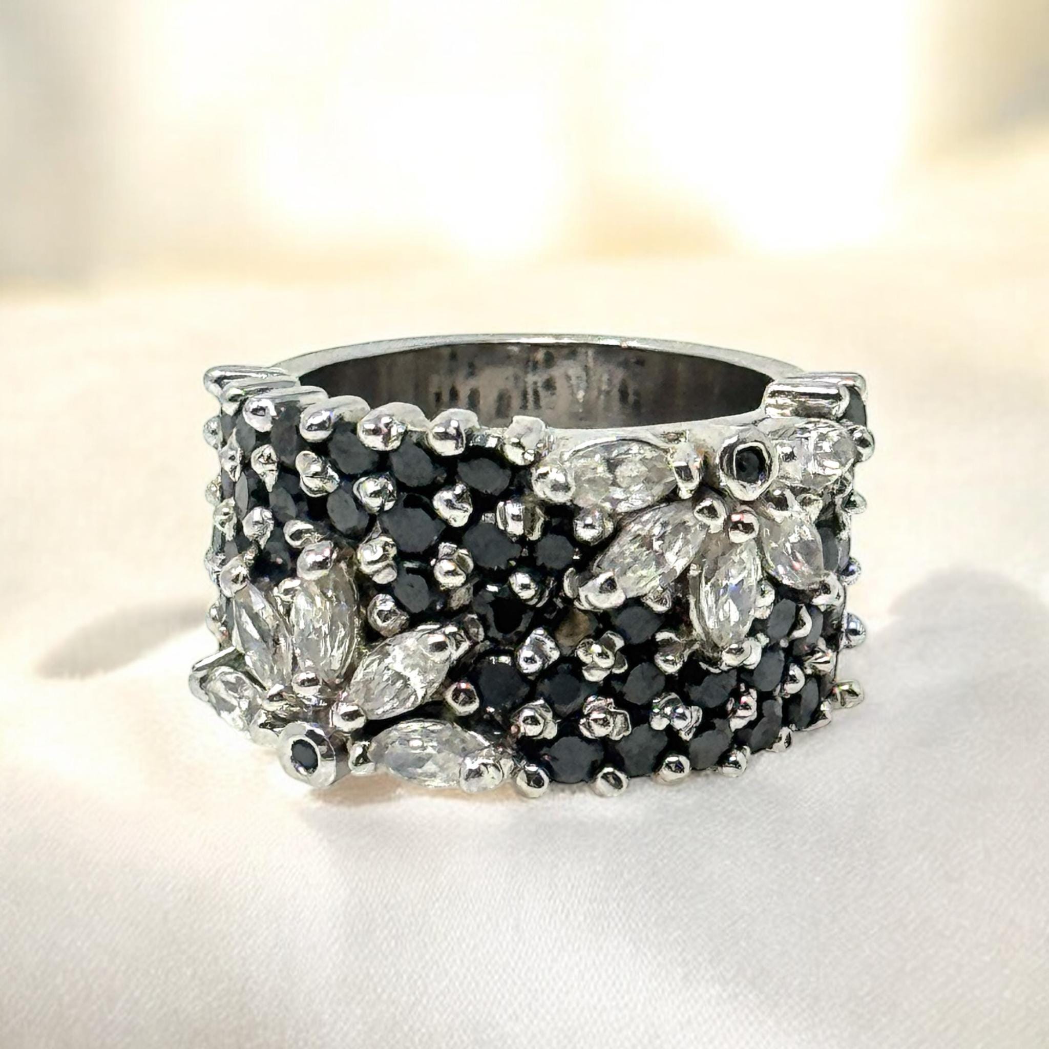 Sterling Silver Ring, Cubic Zirconia Ring, Handmade Statement Wide Band Ring, Gifts for Her, Anniversary Gifts, Black CZ Ring, US Size 7