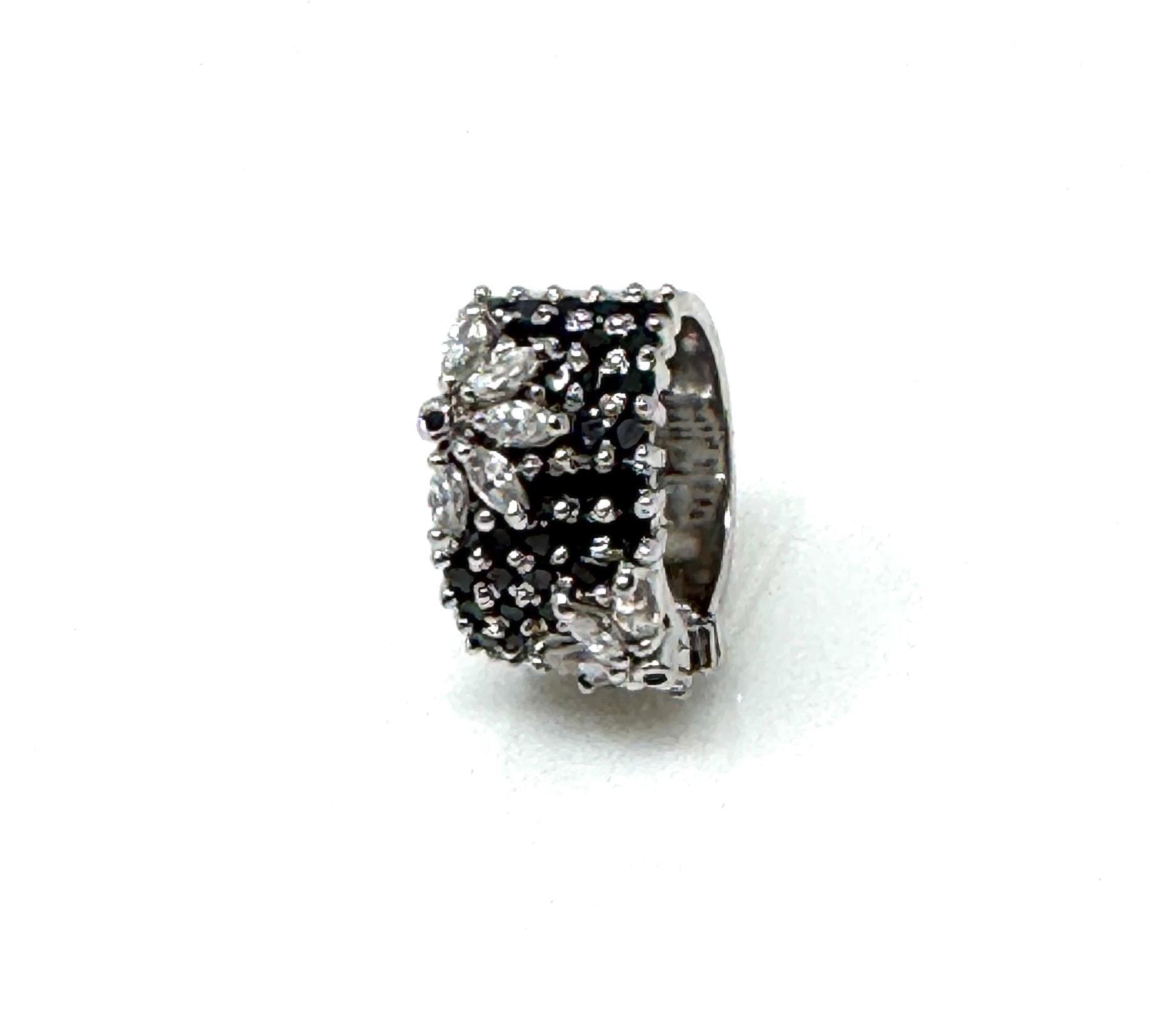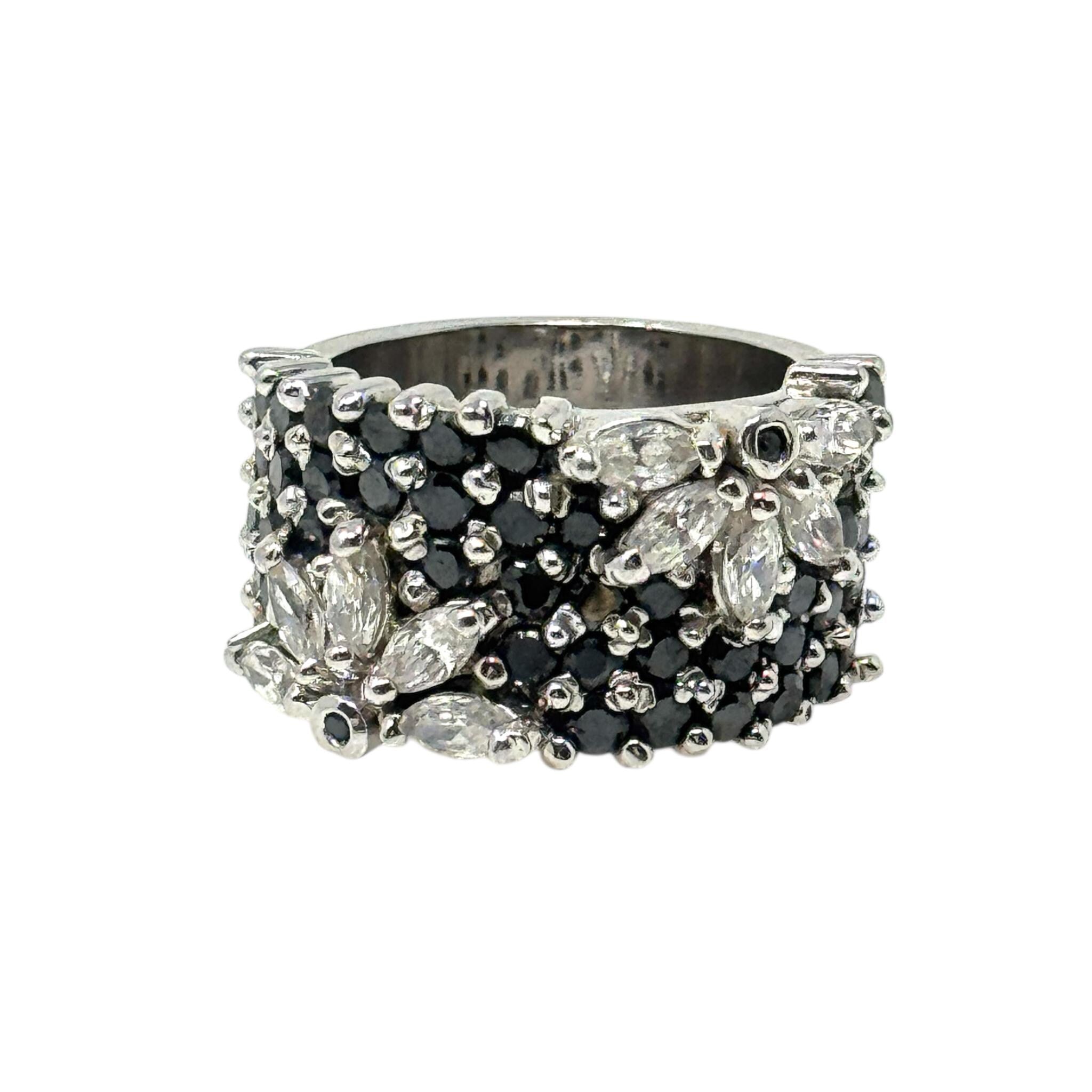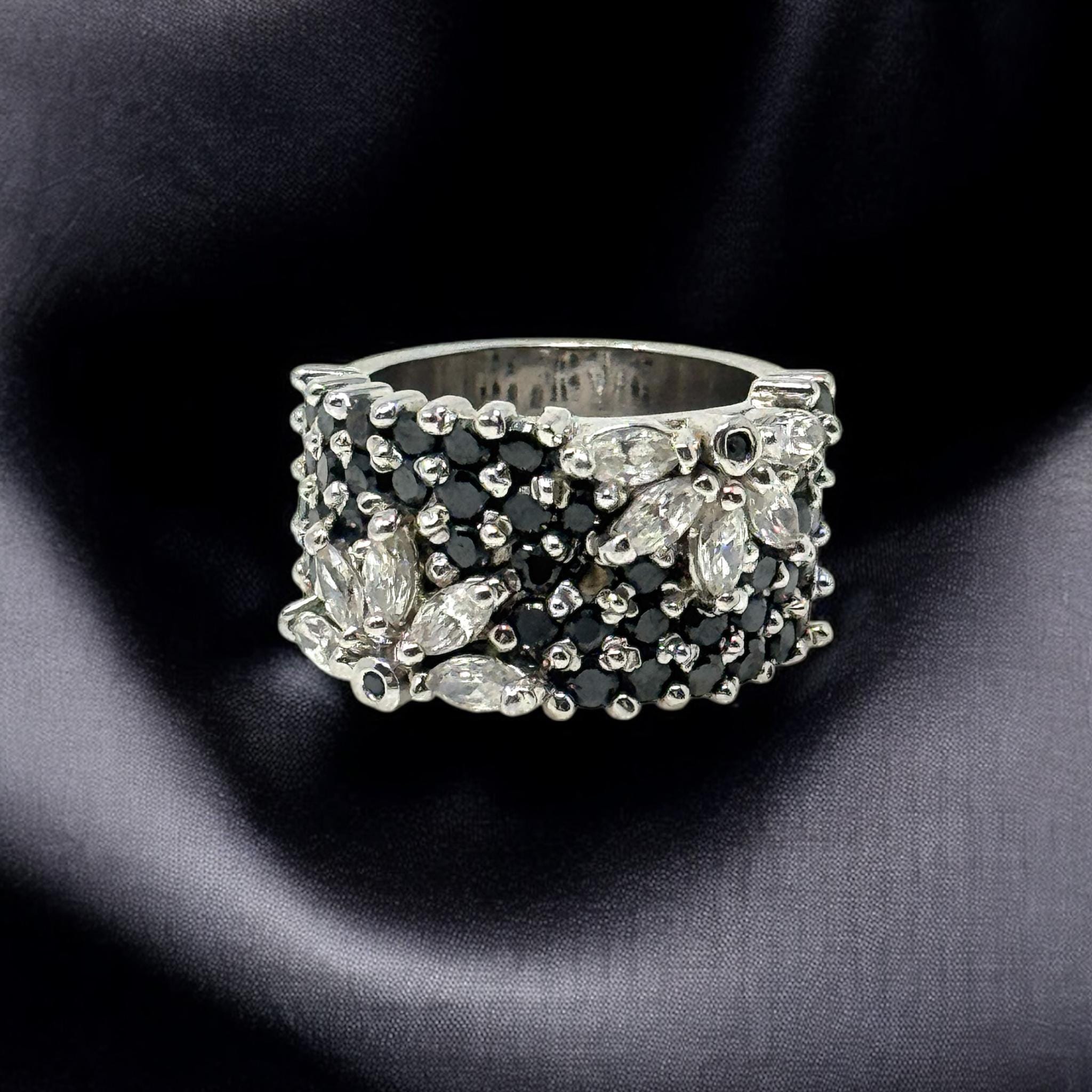 Sterling Silver Ring, Cubic Zirconia Ring, Handmade Statement Wide Band Ring, Gifts for Her, Anniversary Gifts, Black CZ Ring, US Size 7
