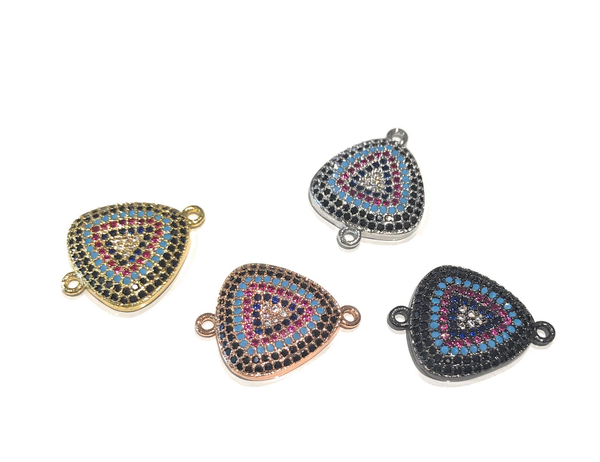 This Beautiful CZ Micro Pave Triangle Shape Connector with Black CZ, Pink Cz , Turquoise Cz and Clear Cz is an excellent choice for making Bracelets, Necklaces or any Creative Jewelry Piece.
