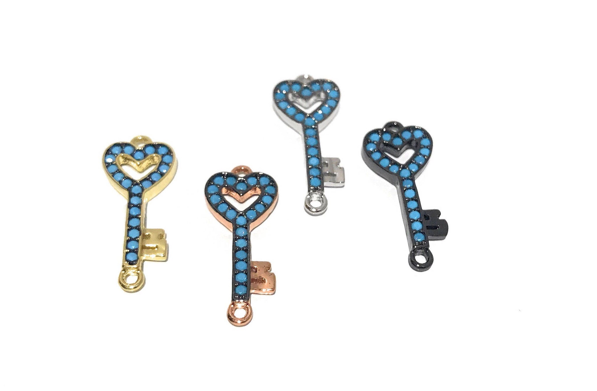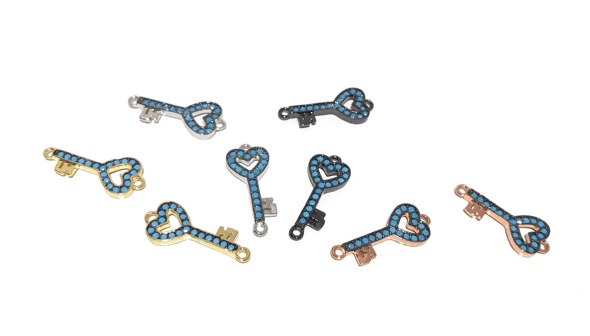 CZ Micro Pave Turquoise Key Link Connector Jewelry Findings for Jewelry Making at Wholesale Price .