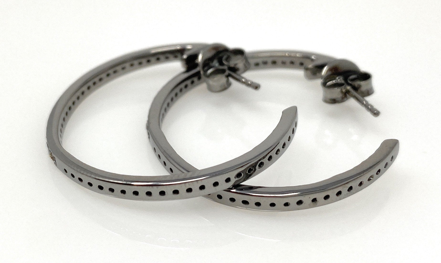 25mm Black Rhuthenium over Sterling Silver Pave Diamond Hoop Earrings.