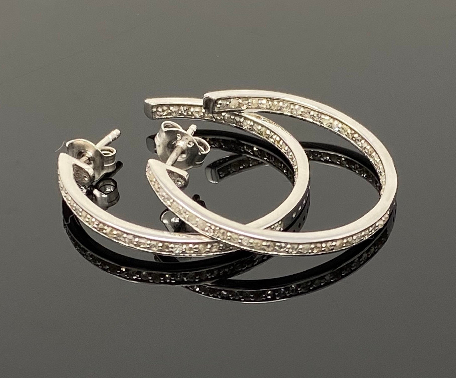 Sterling Silver Pave Diamond Hoop Earrings.
