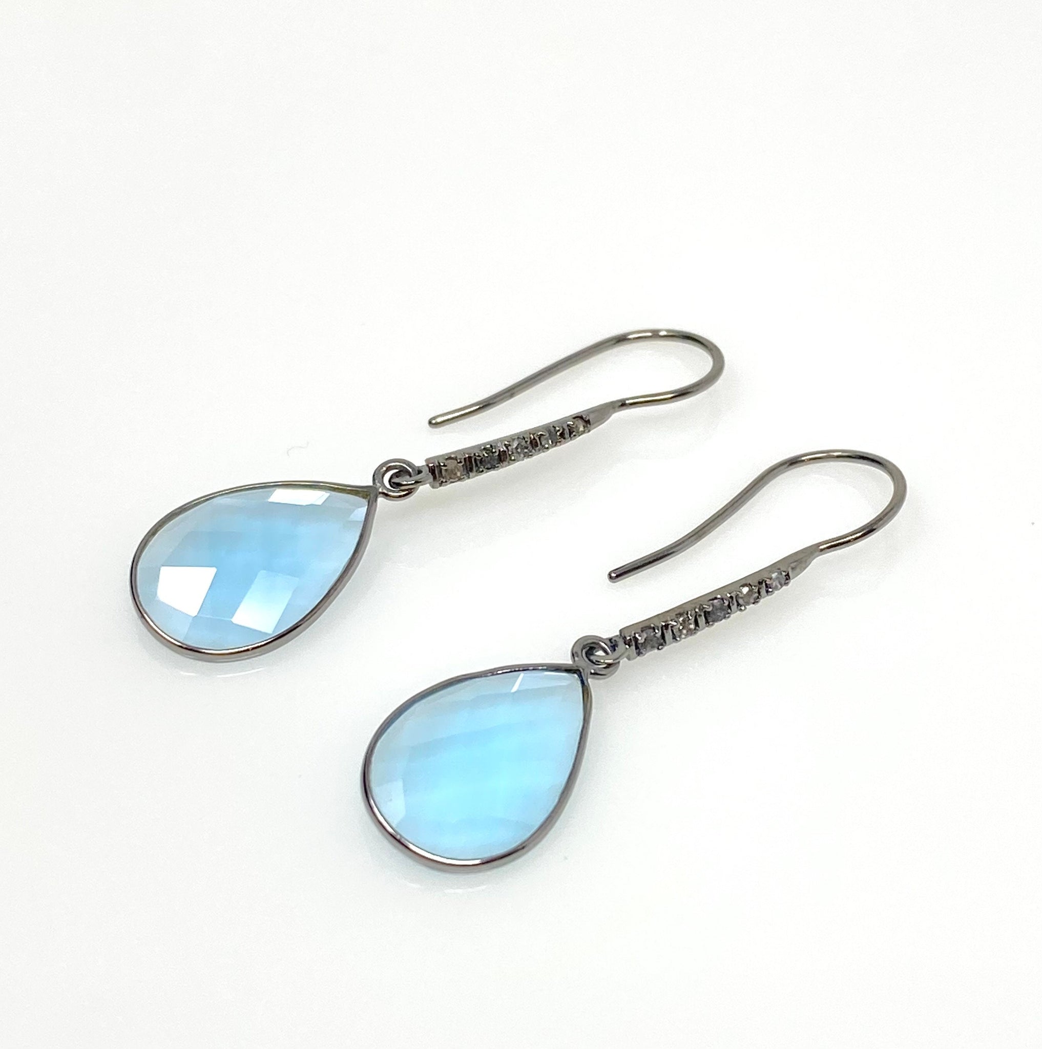 These beautiful Earrings are made with meticulous care using genuine diamonds and Genuine Blue Topaz bezel set in Black Rhuthenium over Sterling Silver.