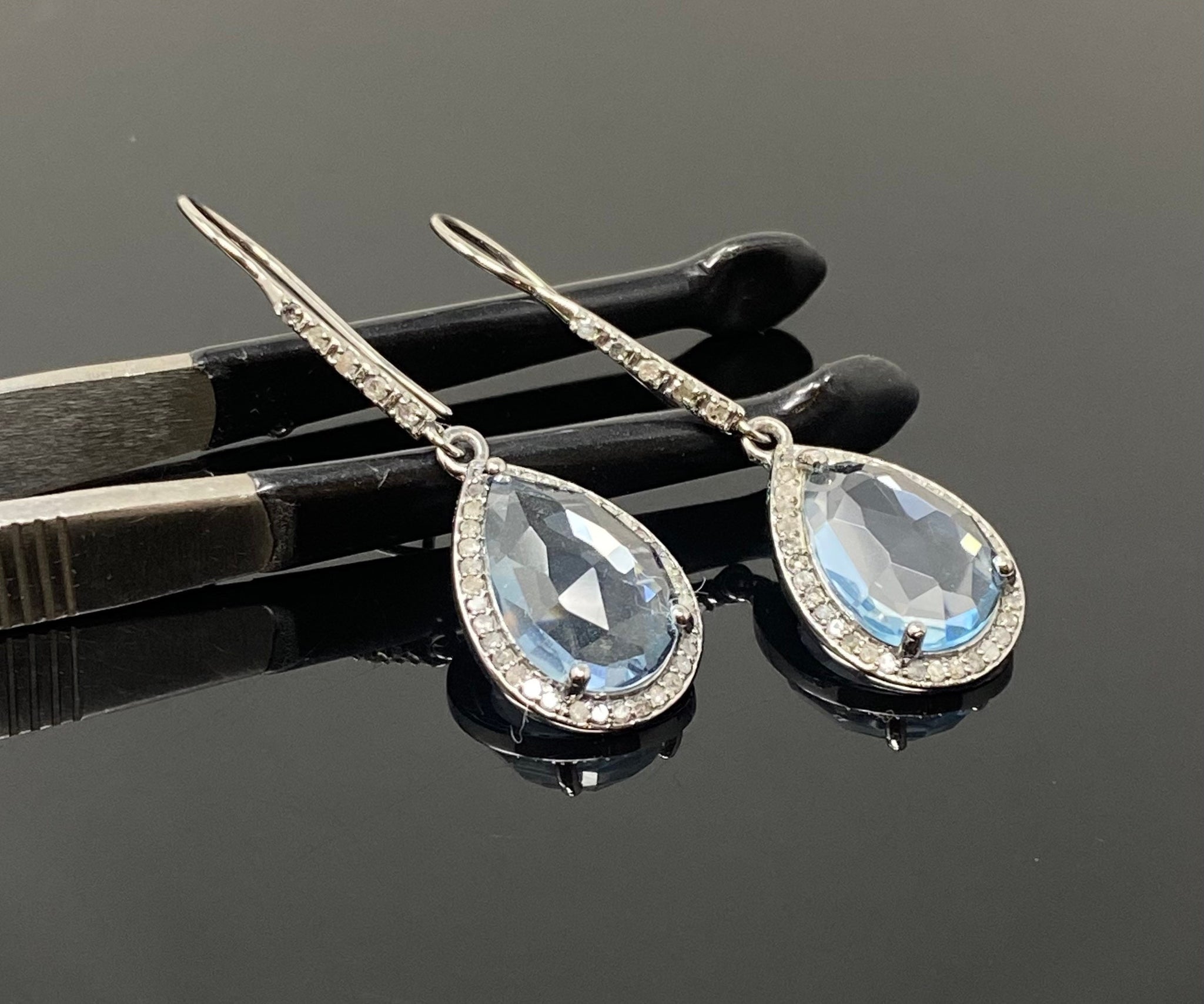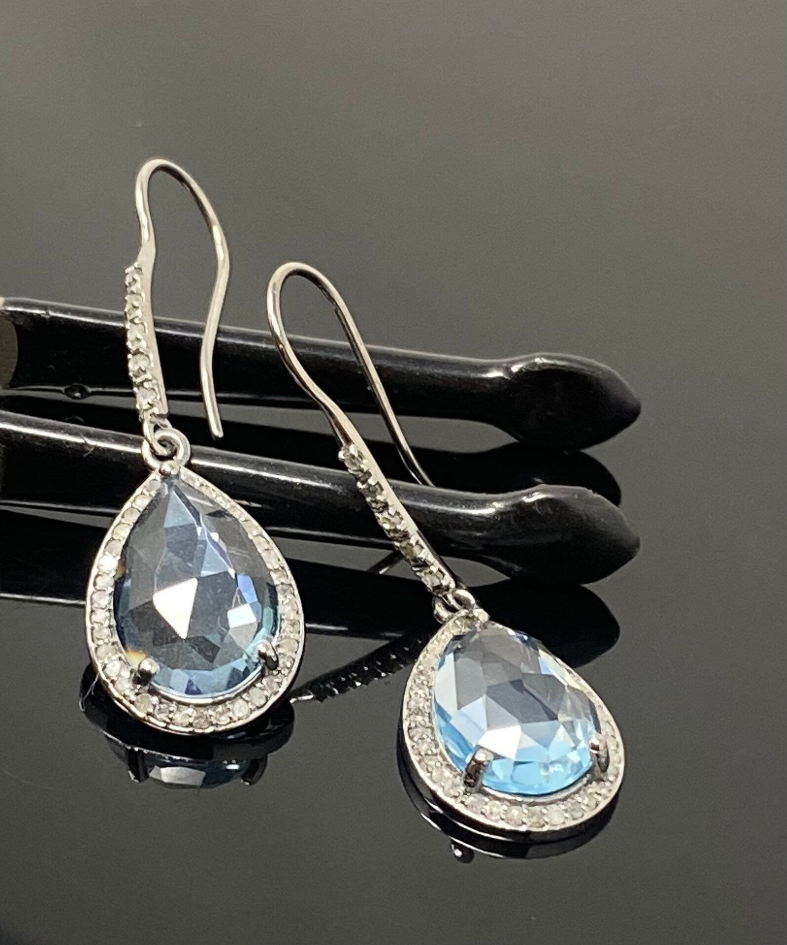 These beautiful Earrings are made with meticulous care using genuine diamonds and Genuine Sky Blue Topaz.