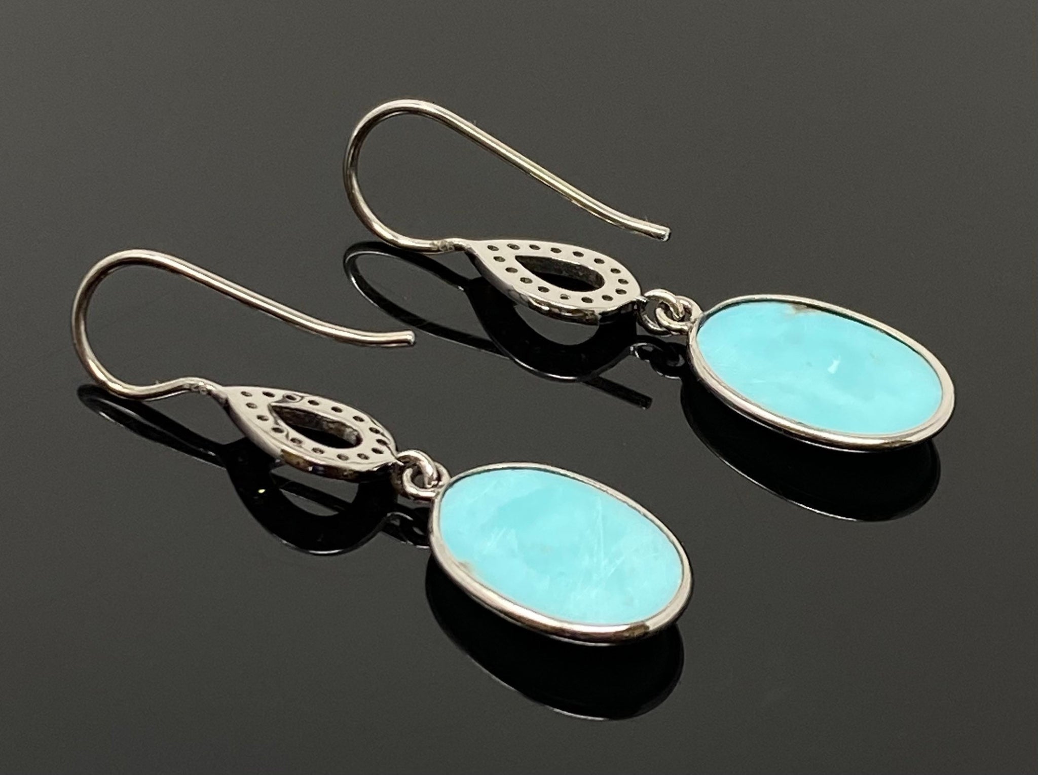 Natural Sleeping Beauty Turquoise Pave Diamond Earrings.