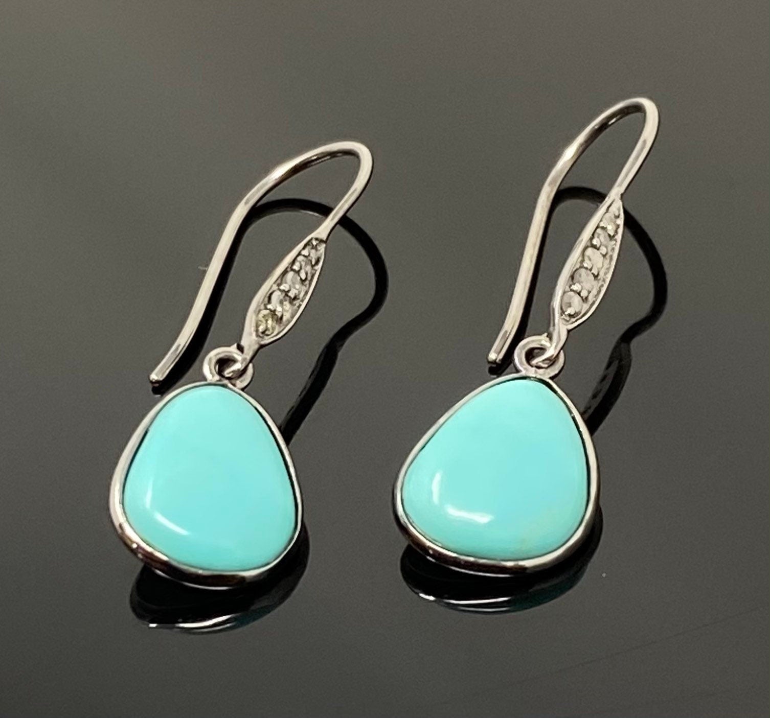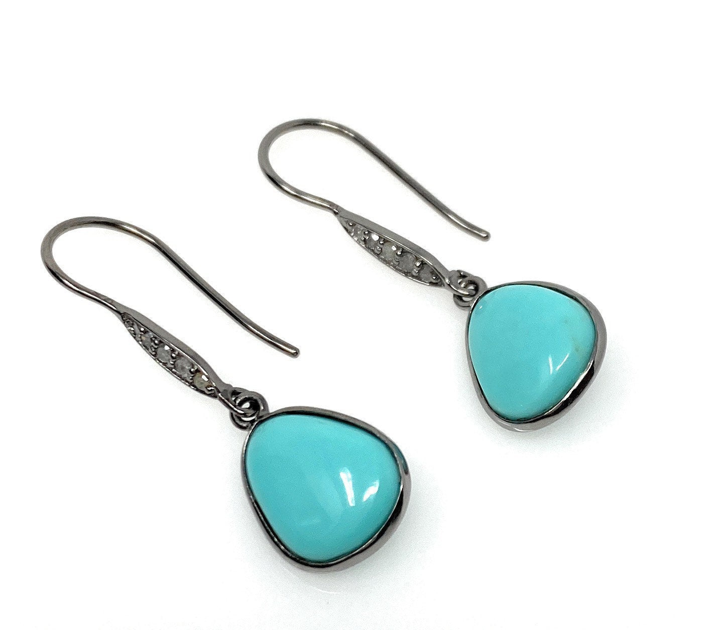 Natural Sleeping Beauty Turquoise Earrings, Pave Diamond Earrings, Victorian Gemstone Earrings, Robin Egg Turquoise, 1.35” x 0.45”
