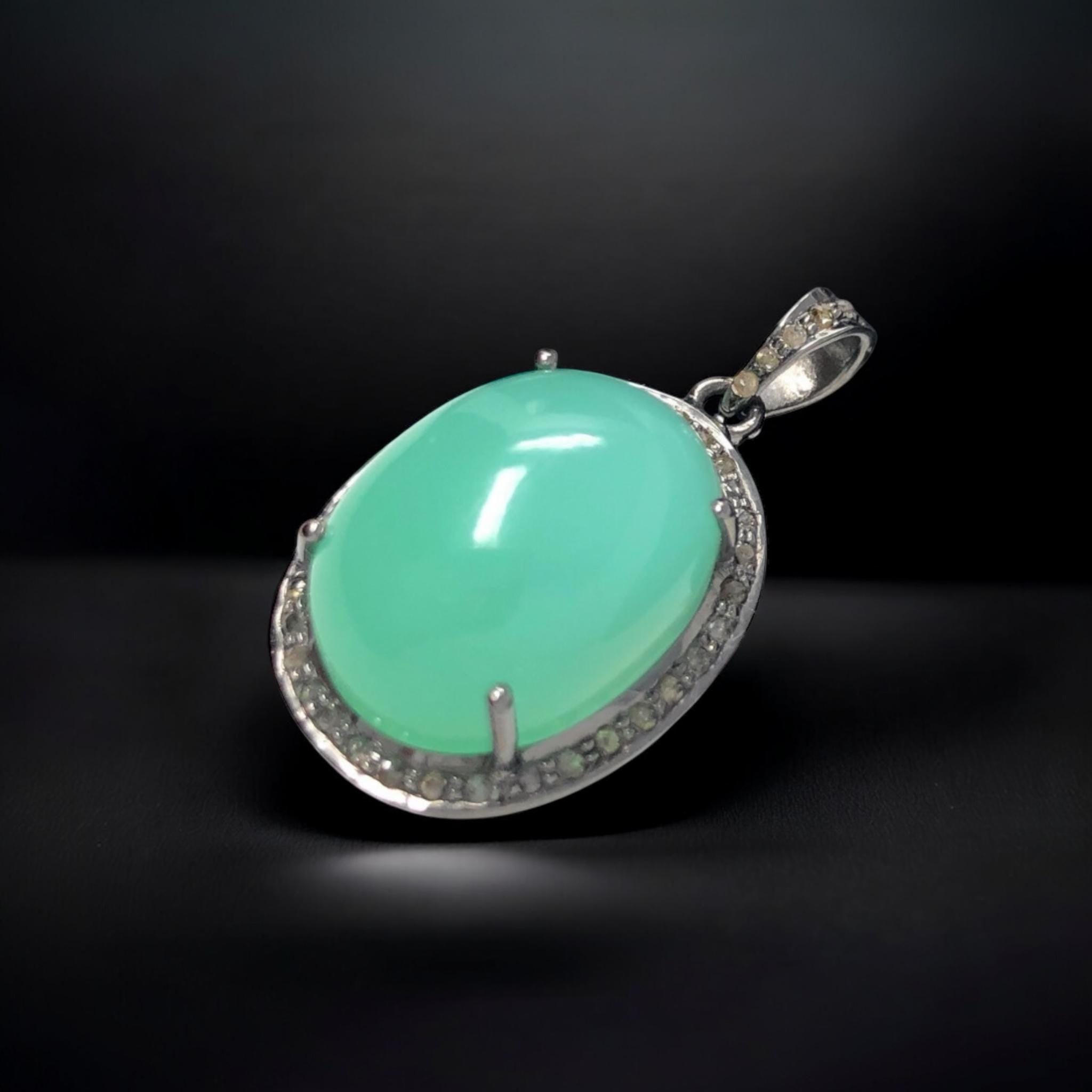 Embrace the transformative power of nature with the Chrysoprase Pave Diamond Pendant.