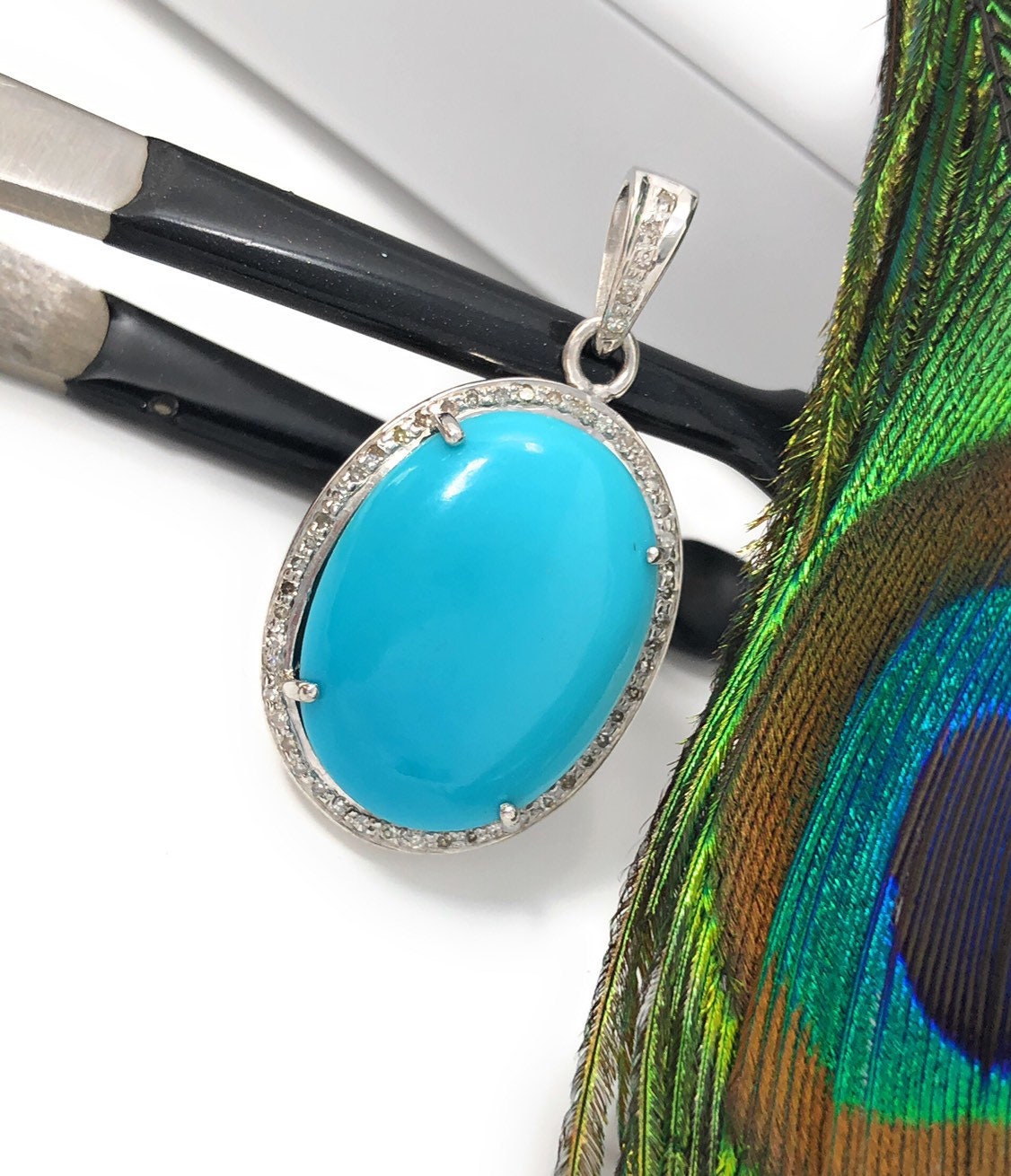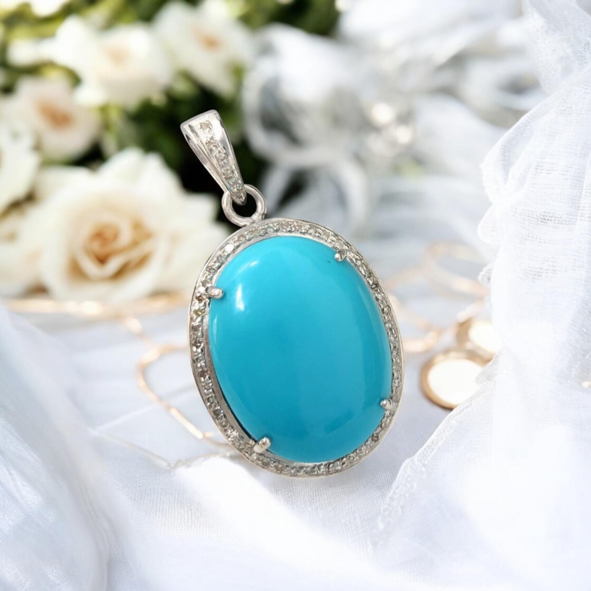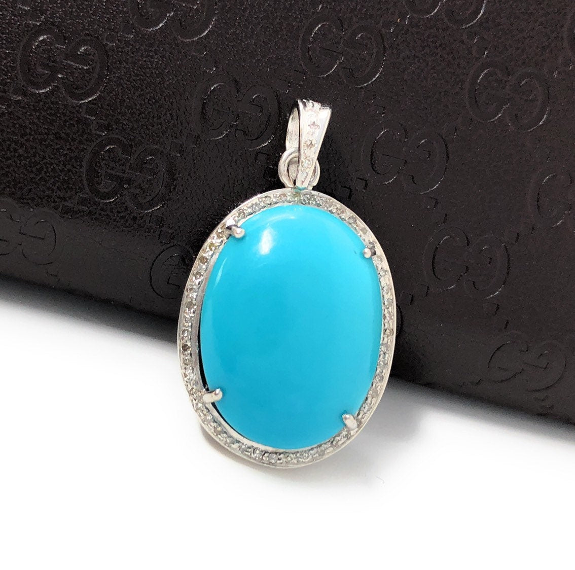 This beautiful Handmade AAA+ Grade Natural Sleeping Beauty Turquoise Oval Shape 925 Sterling Silver Pave Diamond Pendant is an excellent choice for any occasion and makes a great gift for the loved ones.