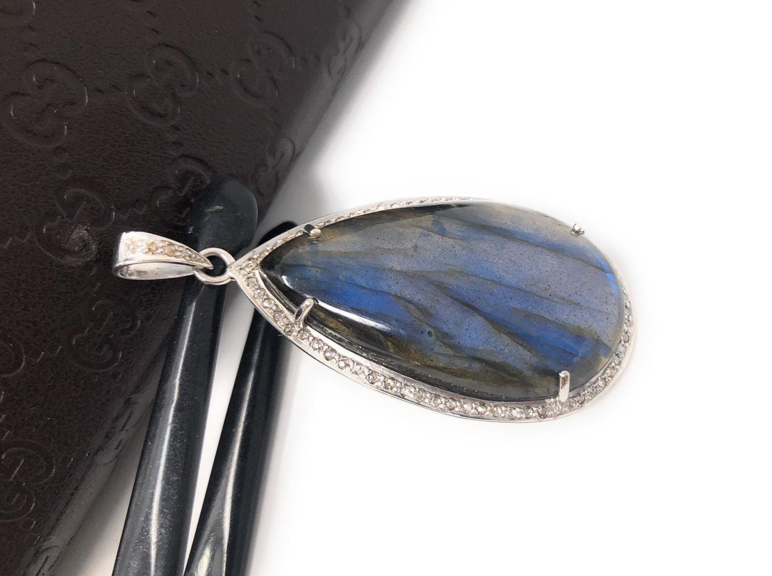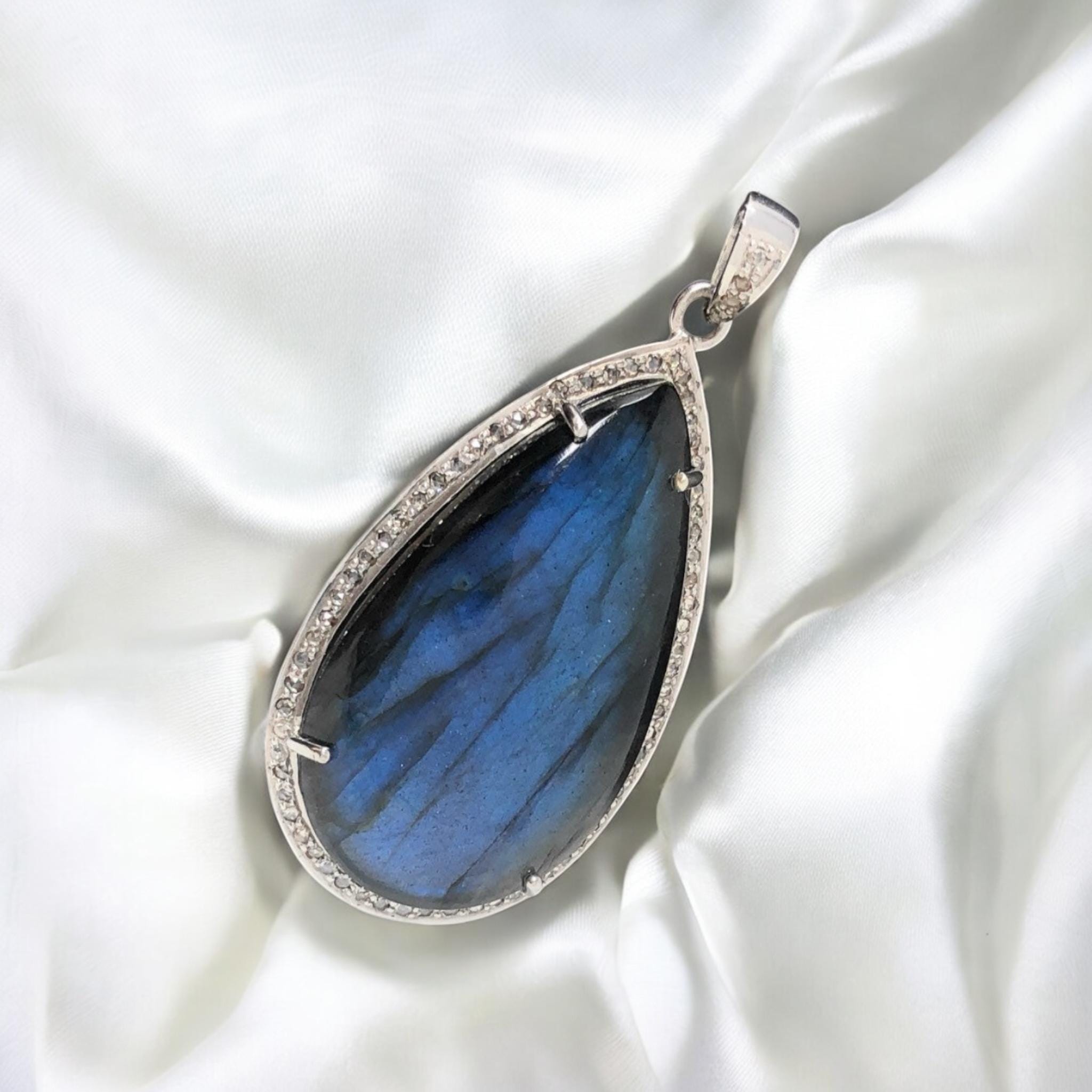 Sterling Silver Natural Labradorite Gemstone Pave Diamond Pendant at Wholesale Price.
