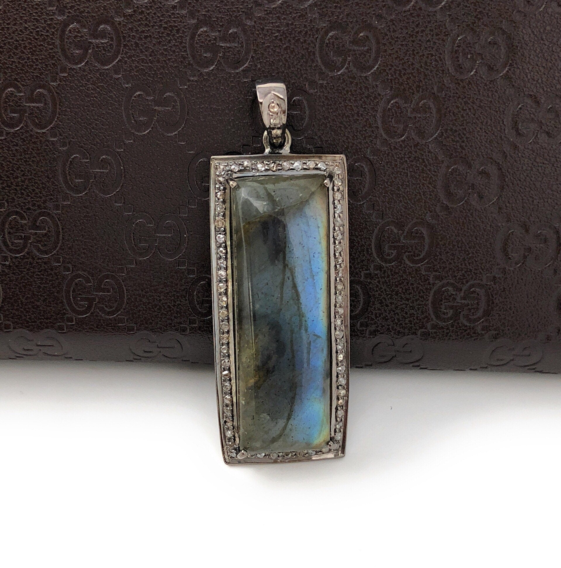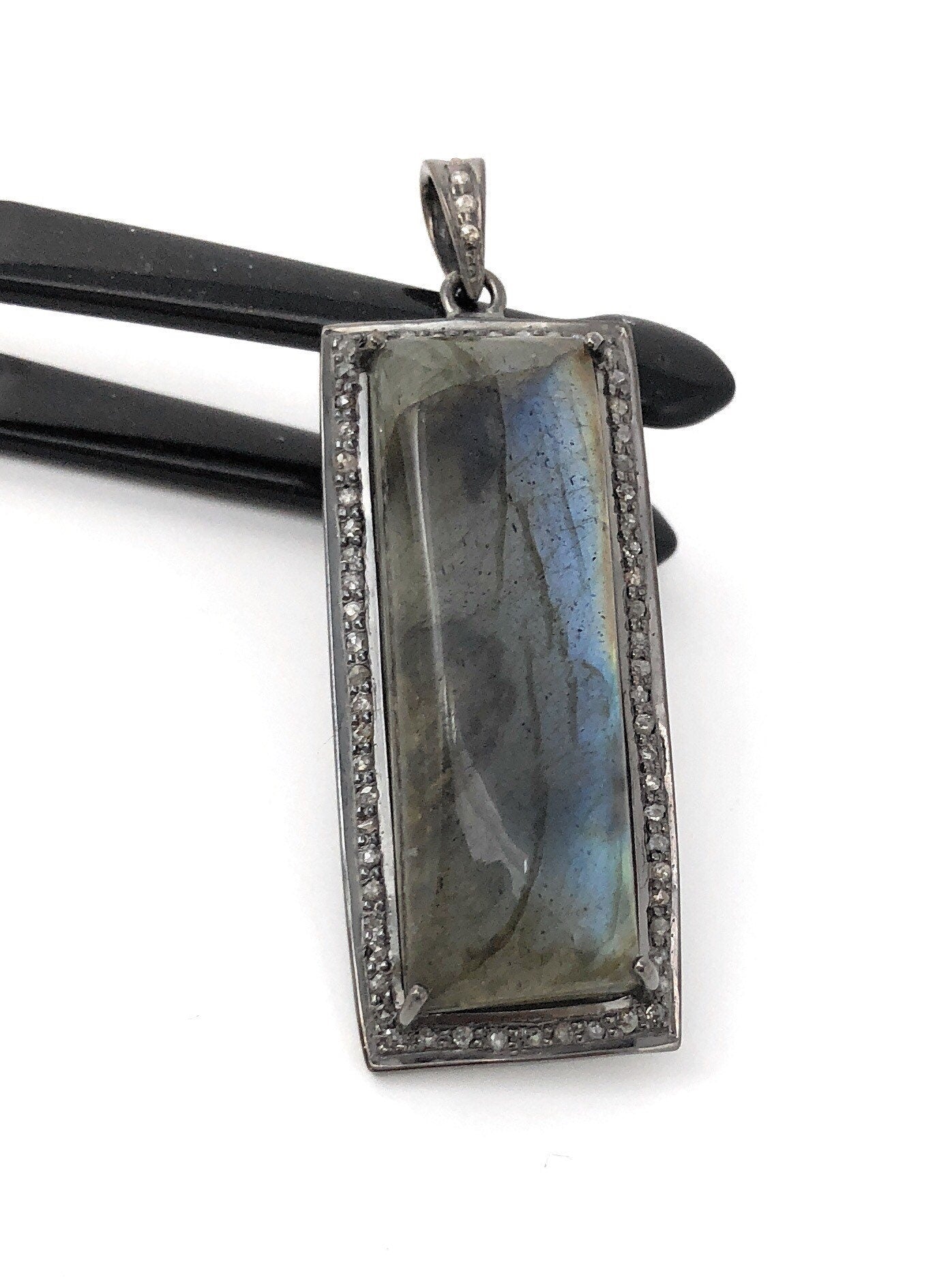 Natural Labradorite Gemstone Pave Diamond Handmade Pendant