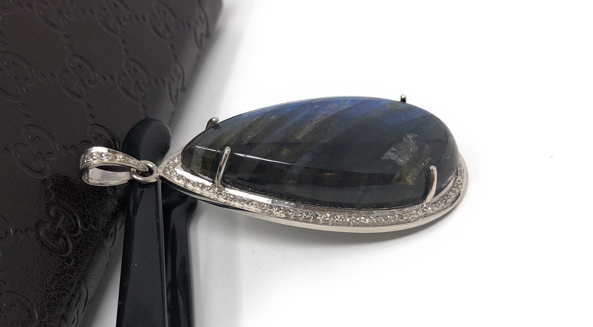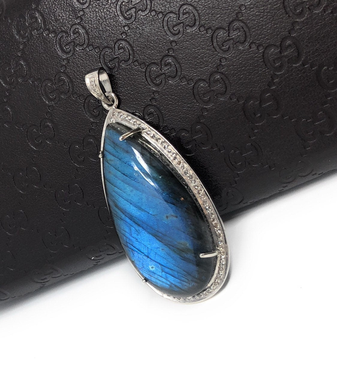 This exclusive beautiful Handmade AAA+ Grade Large Natural Labradorite Gemstone Drop Shape Rhodium Polish over 925 Sterling Silver Pave Diamond Bezel Setting Pendant is an excellent choice for any occasion and makes a great gift for the loved ones.