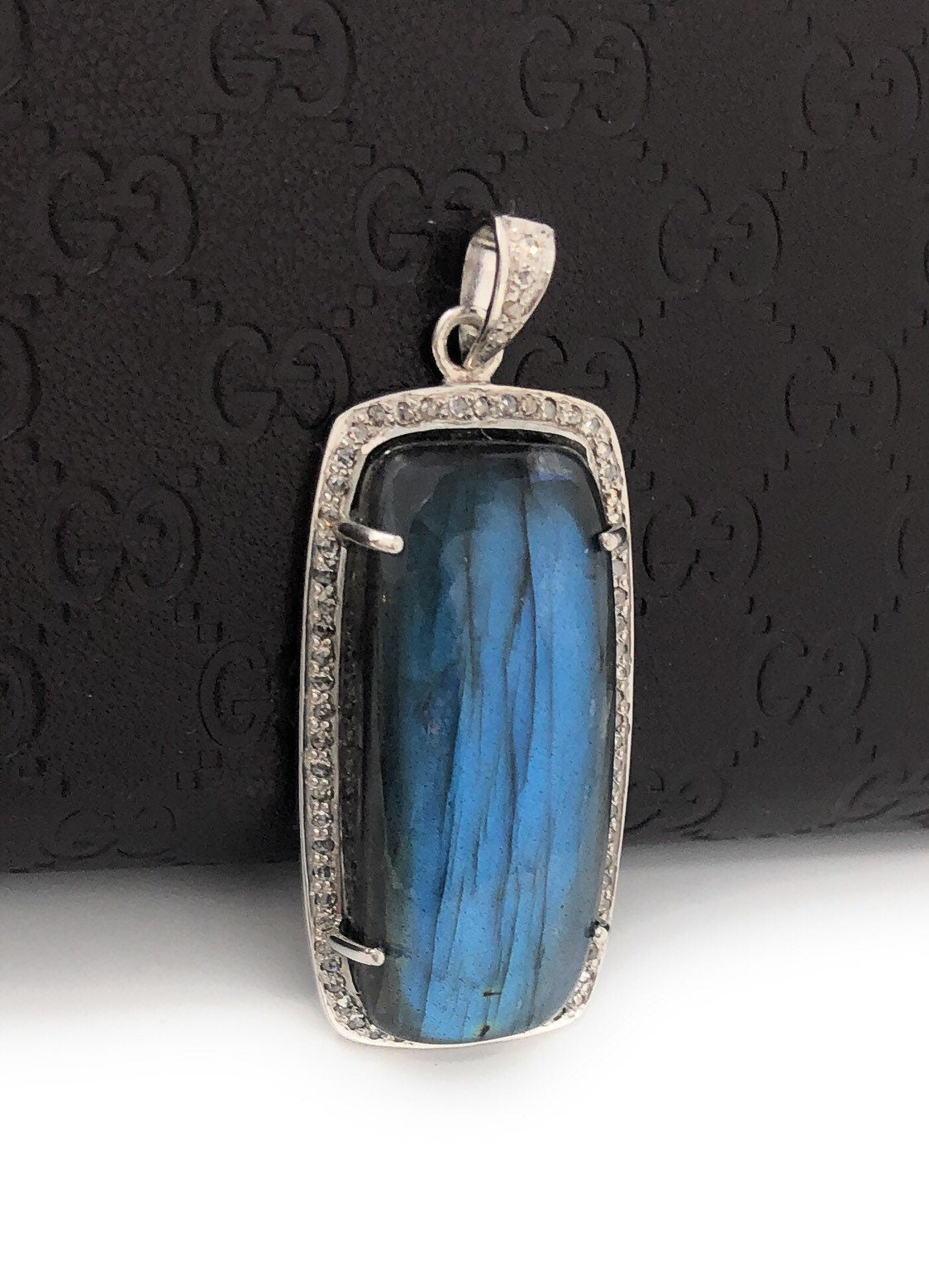 This exclusive beautiful Handmade AAA+ Grade Large Natural Labradorite Gemstone Rectangle Shape Rhodium Polish over 925 Sterling Silver Pave Diamond Bezel Setting Pendant is an excellent choice for any occasion and makes a great gift for the loved ones.