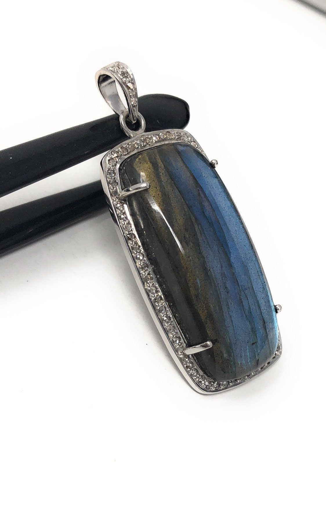 Sterling Silver Natural Labradorite Gemstone Pave Diamond Pendant at Wholesale Price.