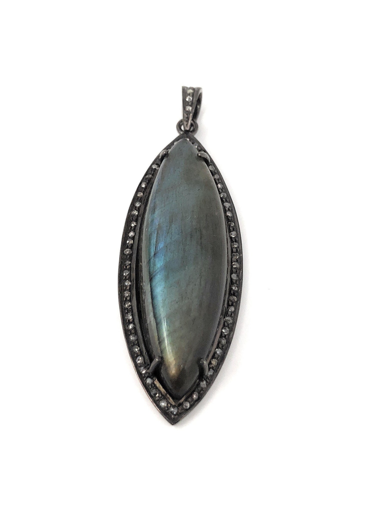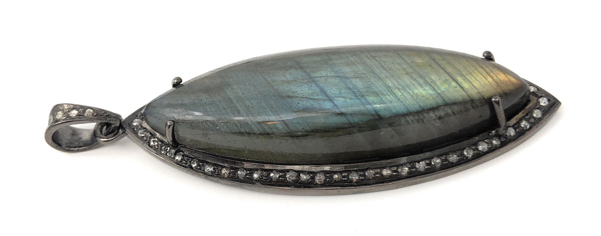 Oxidized Sterling Silver Natural Labradorite Gemstone Pave Diamond Exclusive Pendant at Wholesale Price.