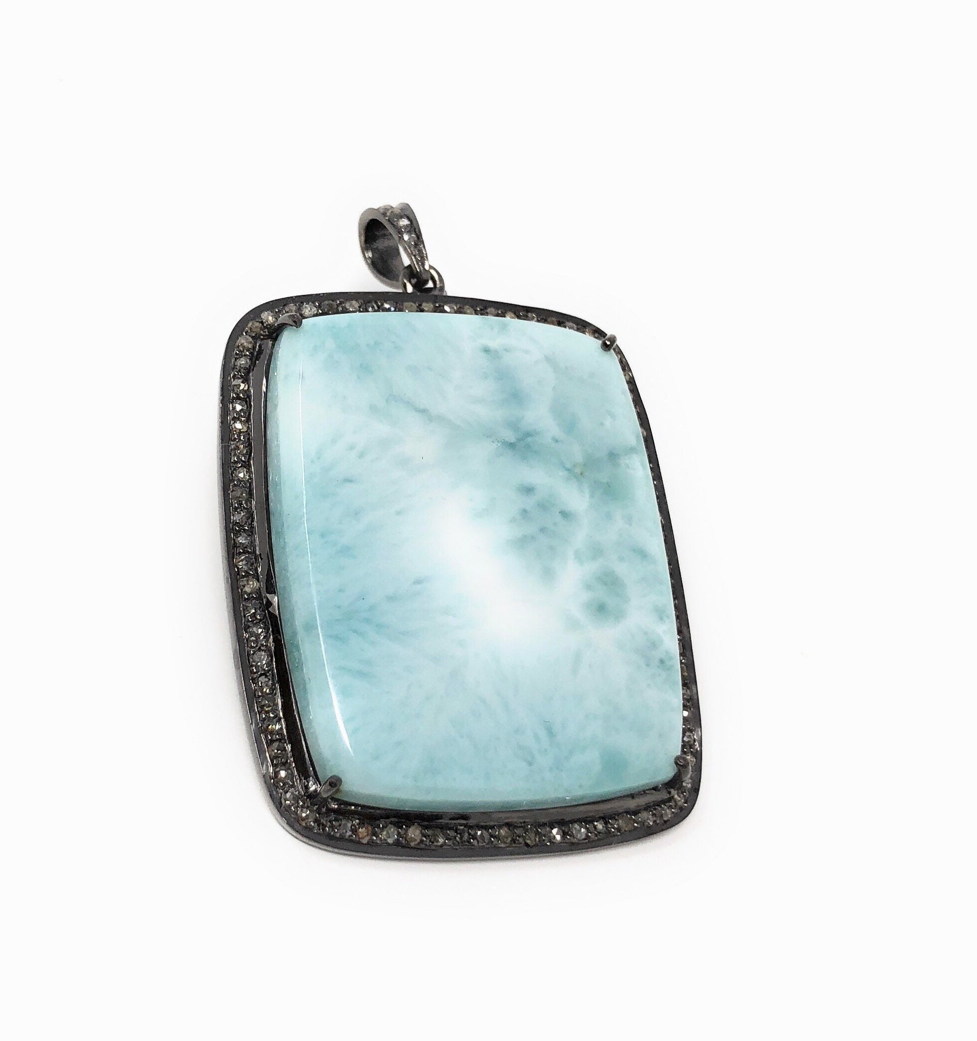 This beautiful Handmade AAA+ Grade Natural Larimar Gemstone Rectangle Shape Oxidized 925 Sterling Silver Large Pave Diamond Bezel Setting Pendant is an excellent choice for any occasion and makes a great gift for the loved ones.