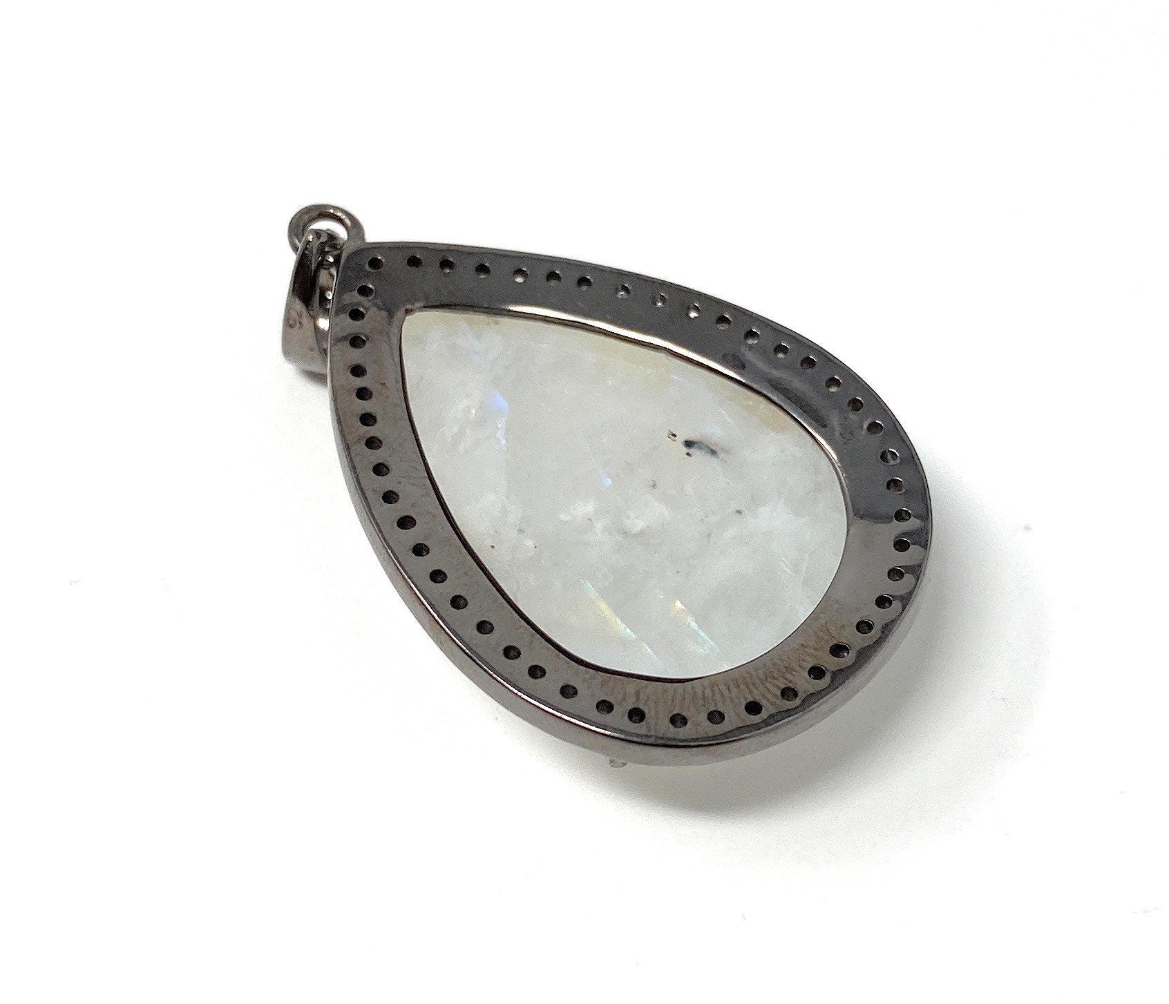 This exclusive beautiful Handmade AAA+ Grade Large Natural Rainbow Moonstone Gemstone Drop Shape Oxidized 925 Sterling Silver Pave Diamond Bezel Setting Pendant is an excellent choice for any occasion and makes a great gift for the loved ones.