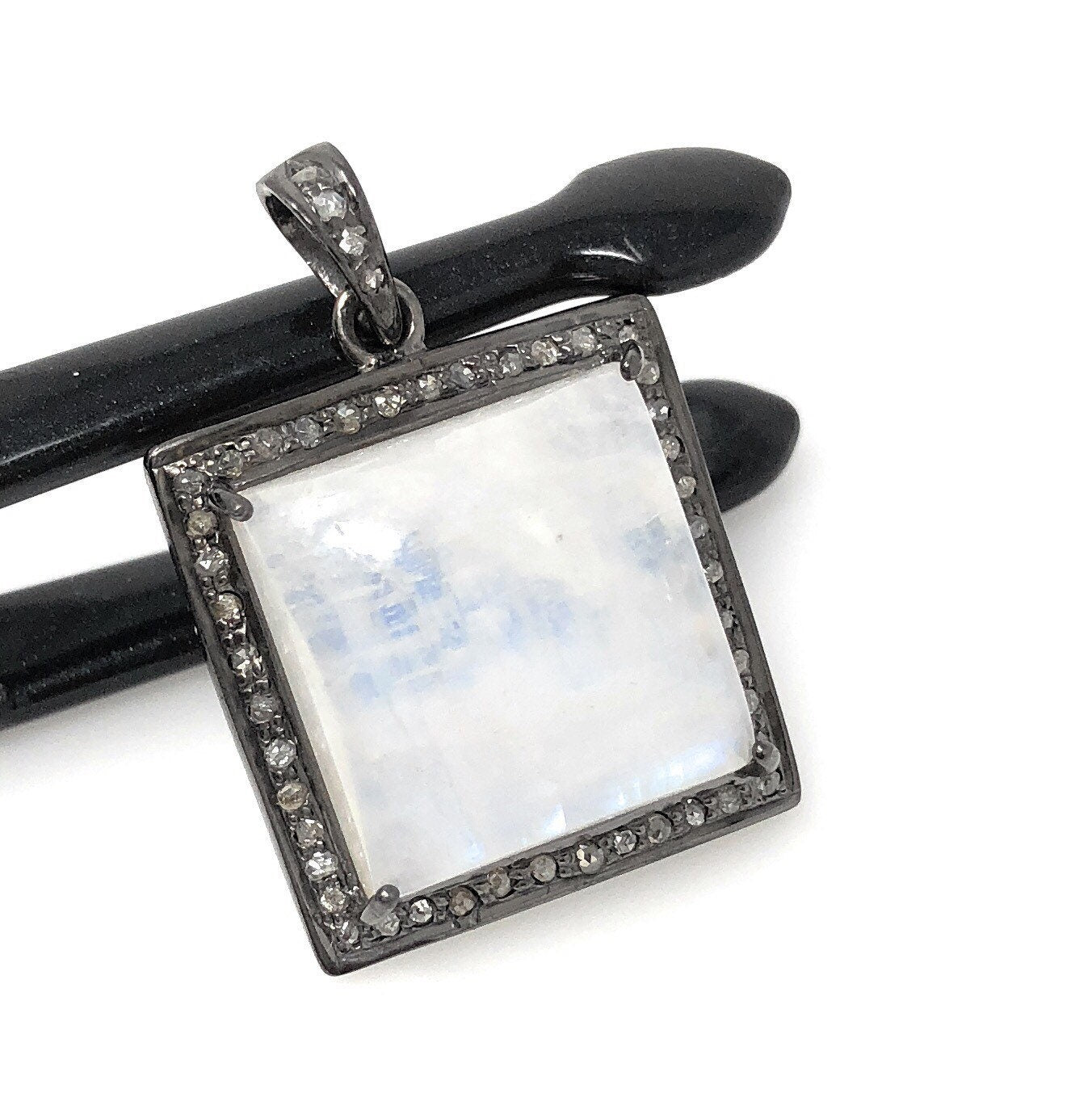 This exclusive beautiful Handmade AAA+ Grade Large Natural Rainbow Moonstone Gemstone Square Shape Oxidized 925 Sterling Silver Pave Diamond Bezel Setting Pendant is an excellent choice for any occasion and makes a great gift for the loved ones.