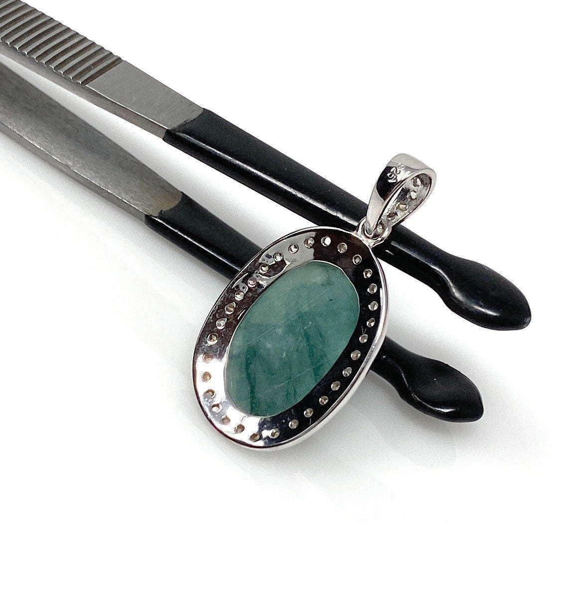 Natural Genuine Rose Cut Sakota Emerald Sterling Silver Diamond Pendant.
