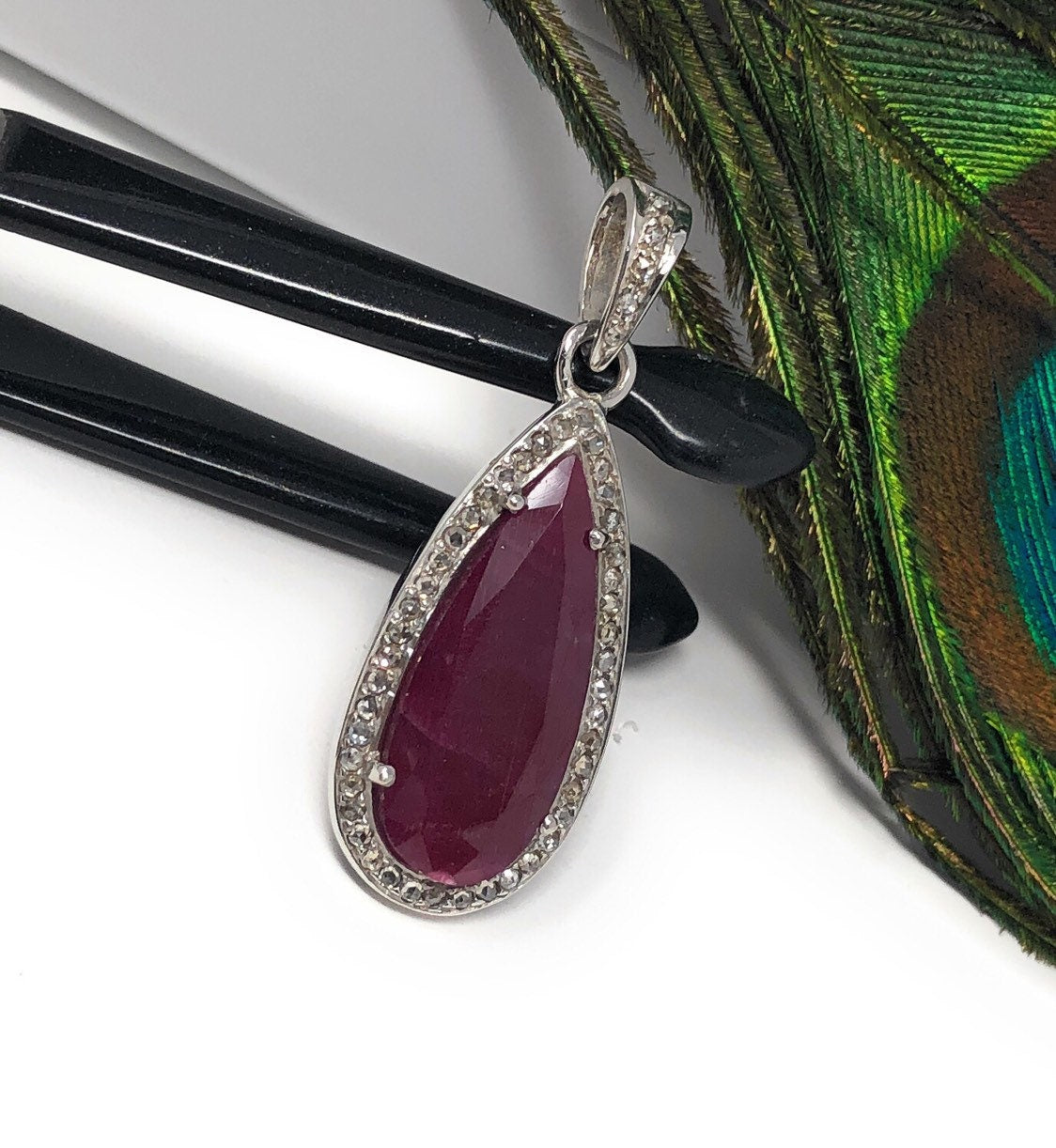 This beautiful Handmade AAA+ Grade Natural Ruby Gemstone Drop Shape 925 Sterling Silver Pave Diamond Pendant is an excellent choice for any occasion and makes a great gift for the loved ones.