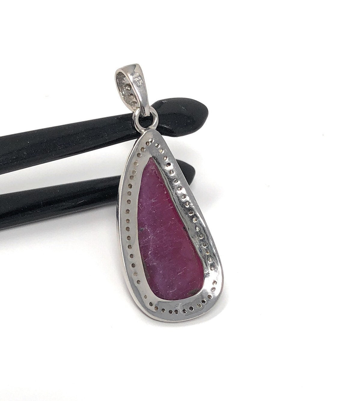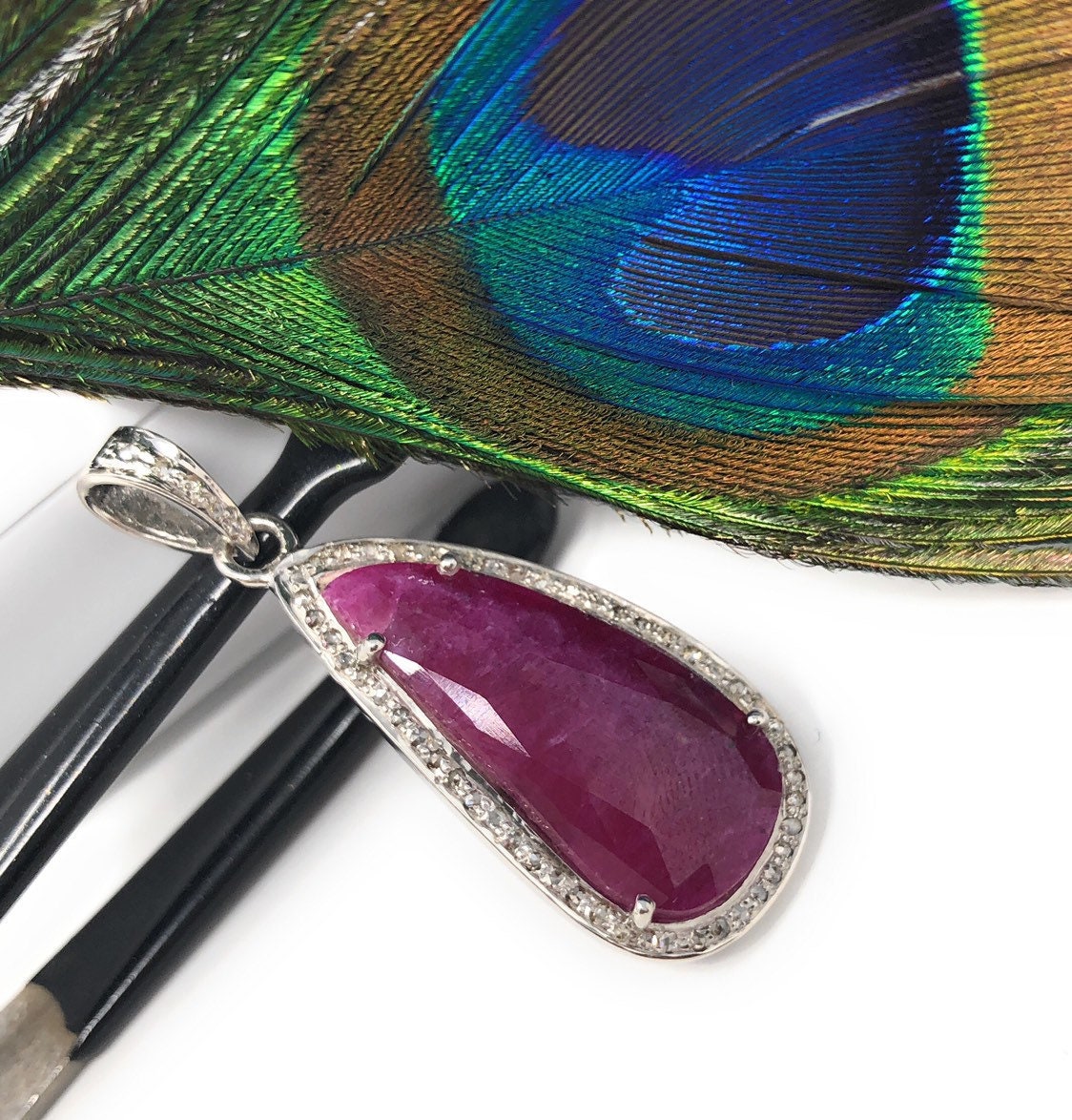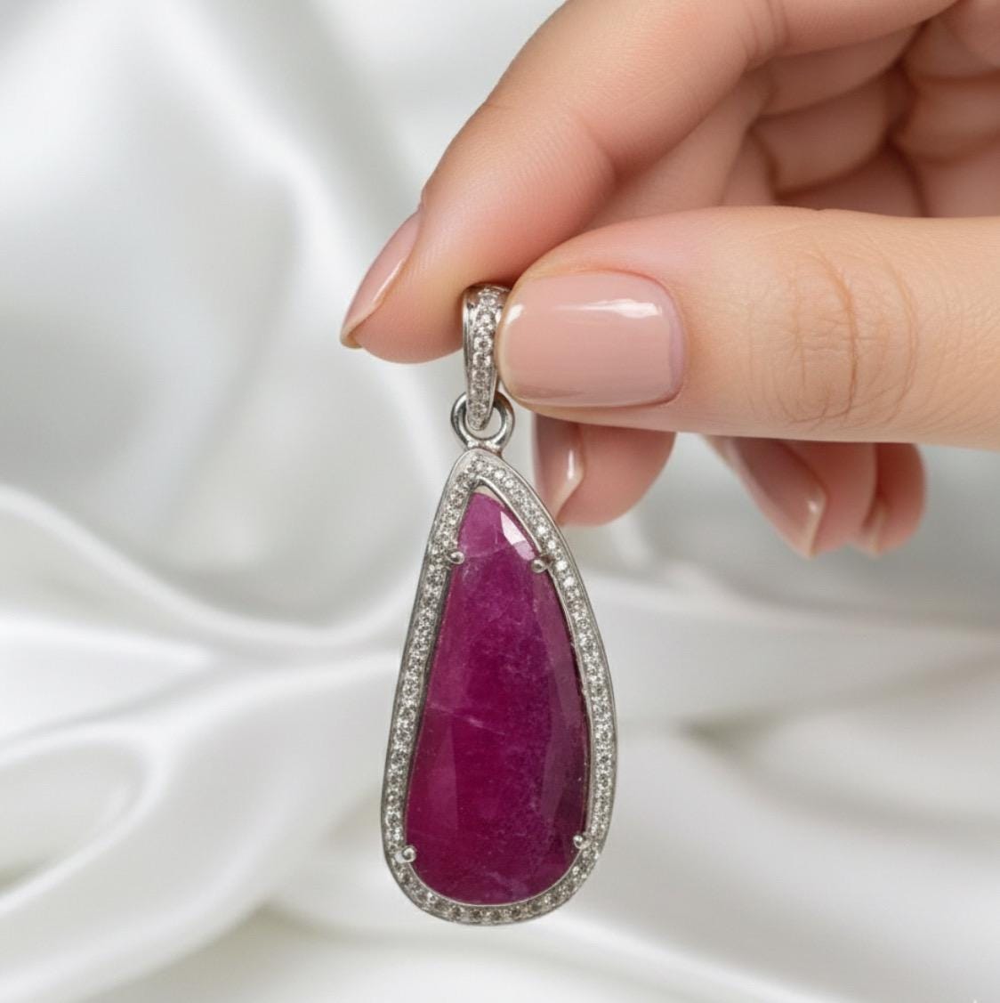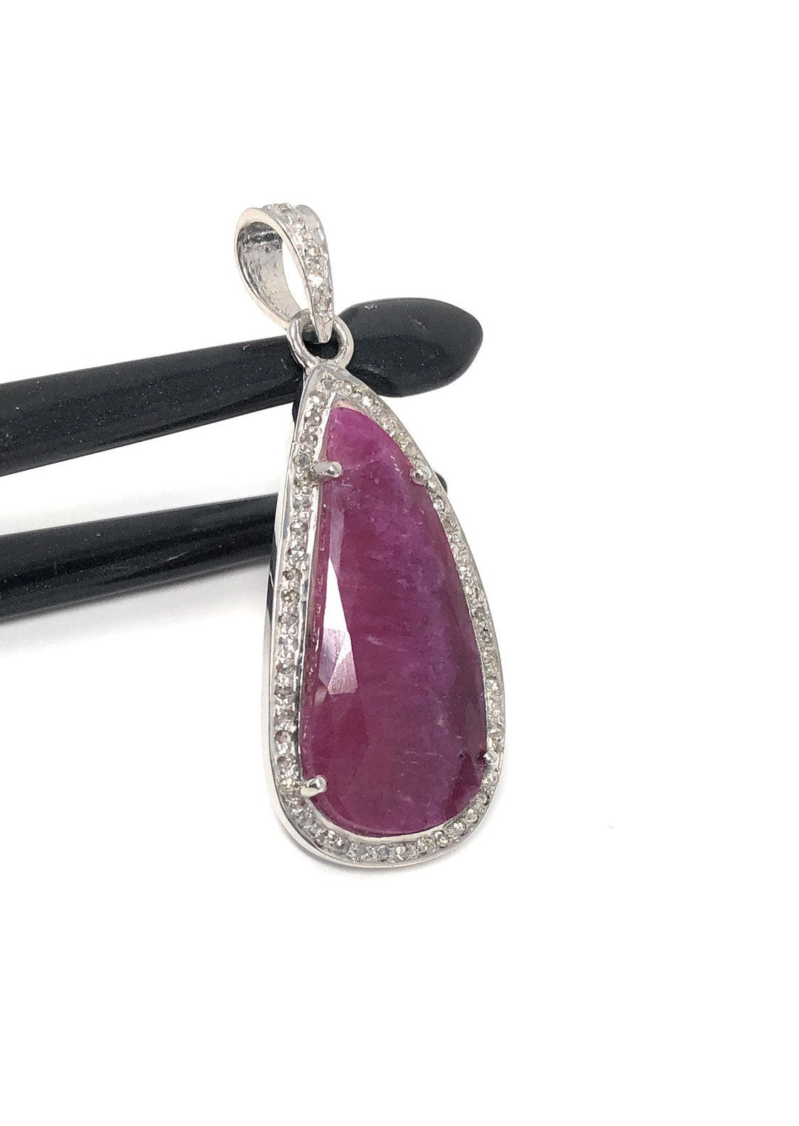 Sterling Silver Natural Gemstone Ruby Pave Diamond Shape Handmade Pendant