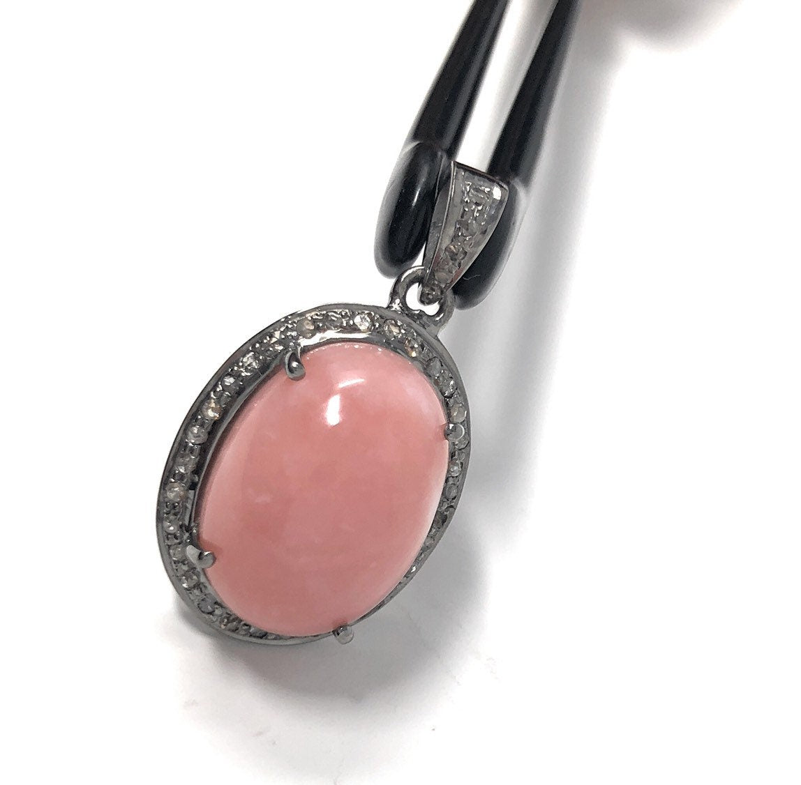 Pink Opal Pendant, Gemstone Pendant, Silver Pendant, Pink Opal Diamond Pendant, Pave Diamond Pendant, Sterling Silver Pendant, DIY Pendant
