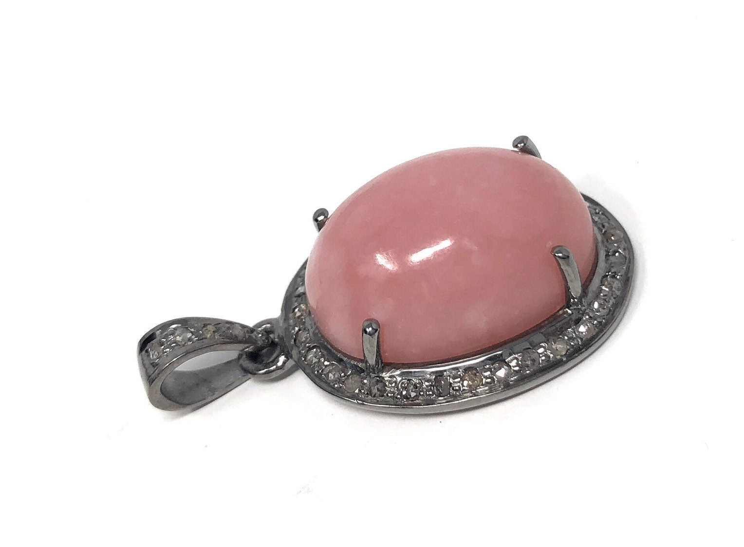 This beautiful Handmade AAA Grade Natural Peruvian Pink Opal Gemstone Oval Shape Oxidized 925 Sterling Silver Pave Diamond Pendant is an excellent choice for any occasion and makes a great gift for the loved ones.