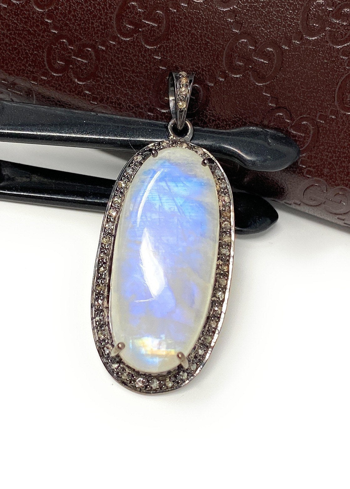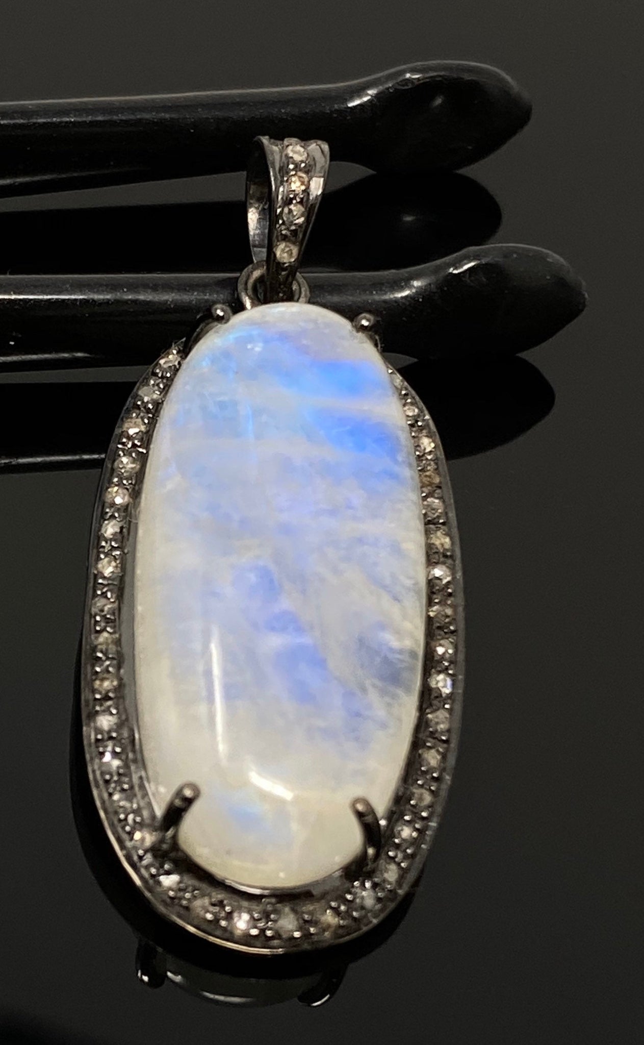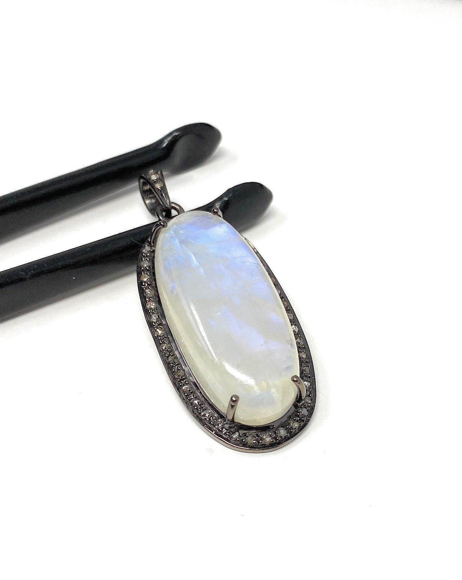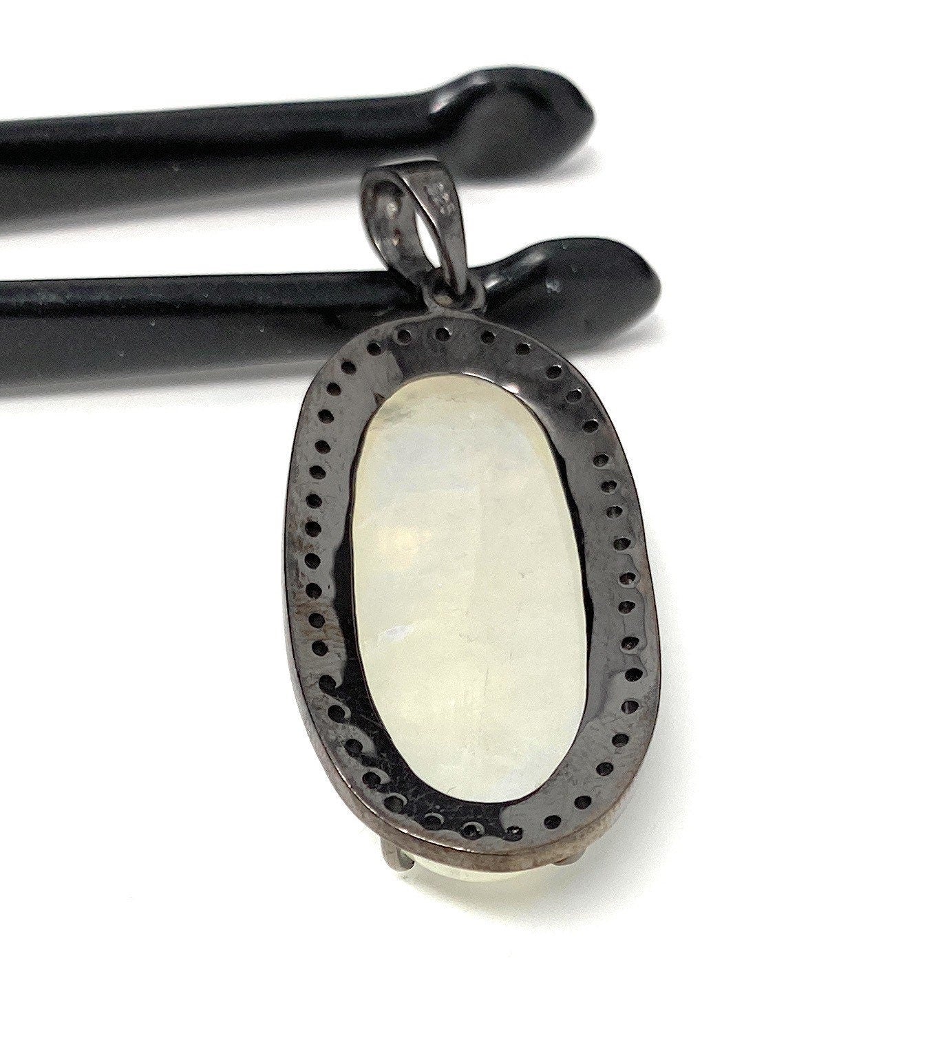 Rainbow Moonstone Gemstone Pendant, Diamond Pendant, Gemstone Pendant, Pave Diamond Pendant, Moonstone Pendant, Sterling Silver Jewelry