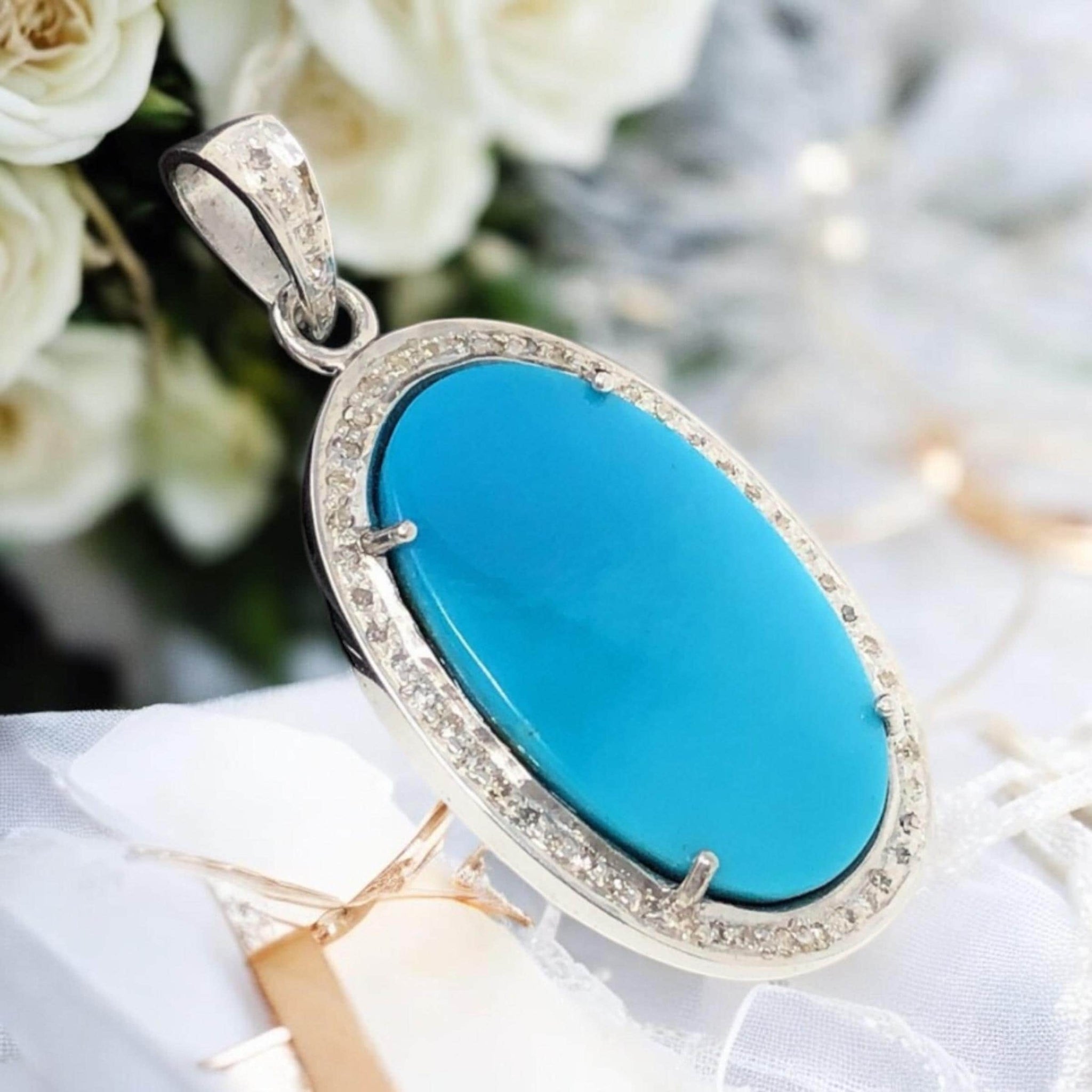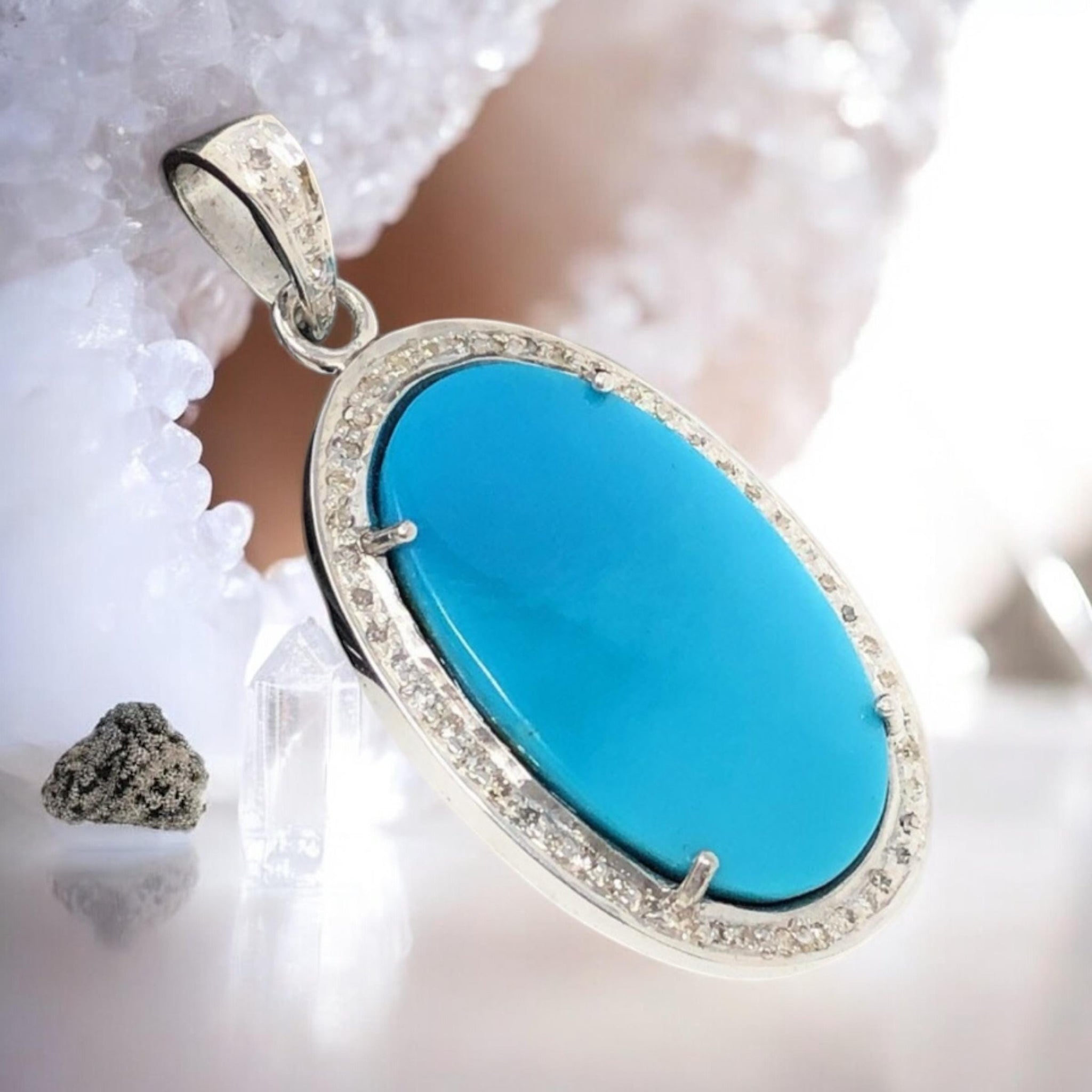Sleeping Beauty Turquoise Pave Diamond Pendant, Spiritual Healing Crystal Pendant, Throat Chakra Gemstone Jewelry, December Birthstone Gifts