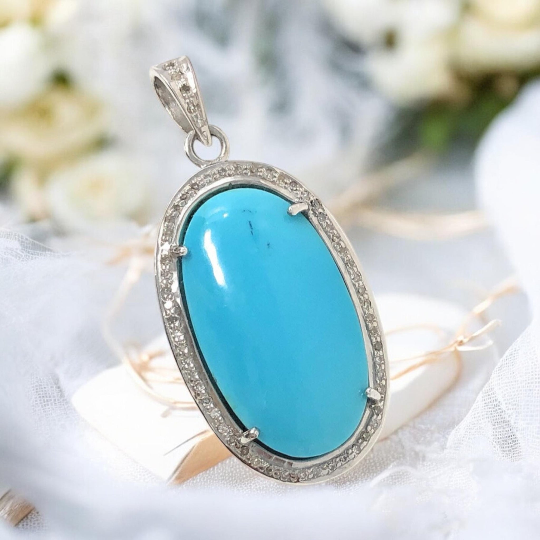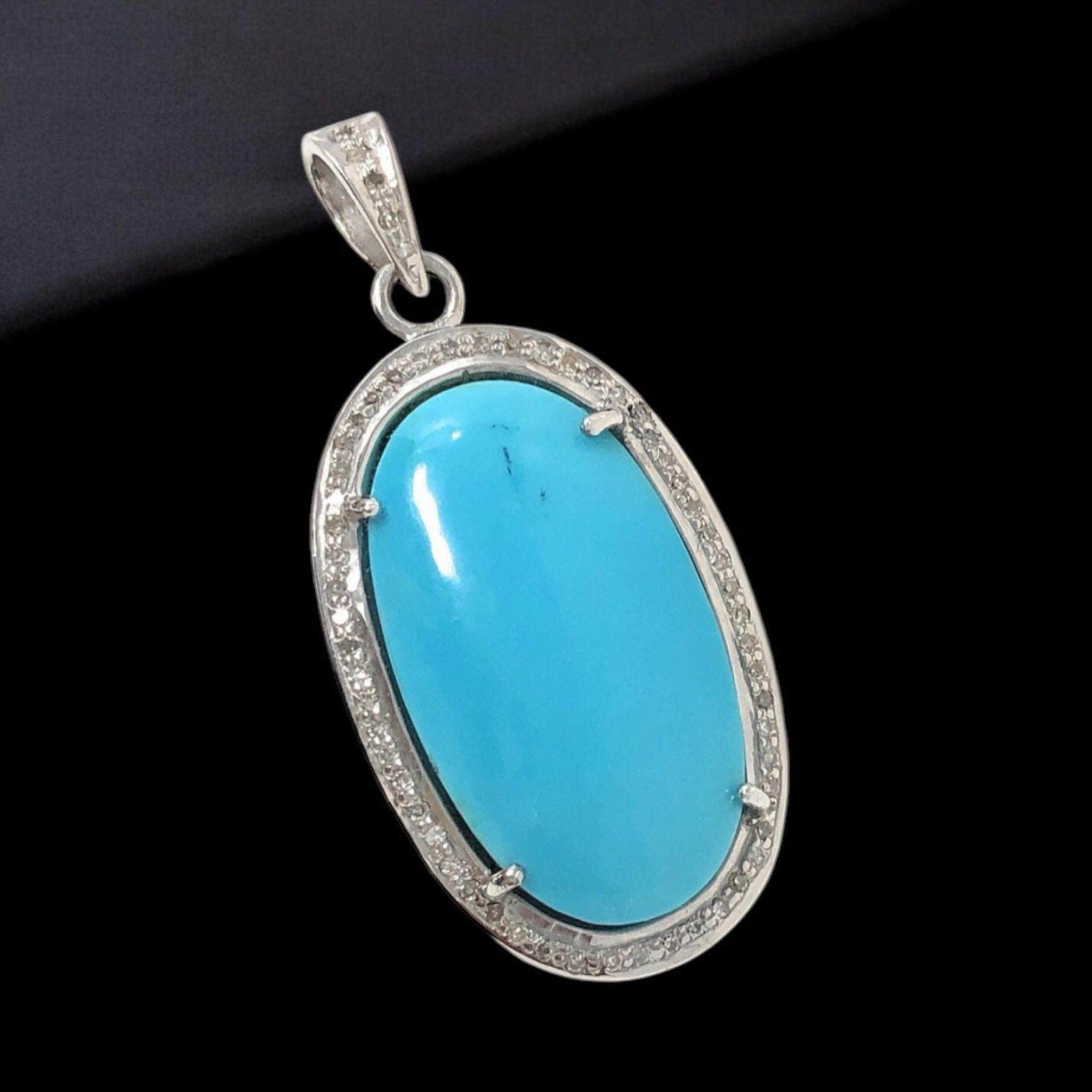 Unlock Your Spiritual Potential with this Breathtaking Turquoise Pave Diamond Pendant
