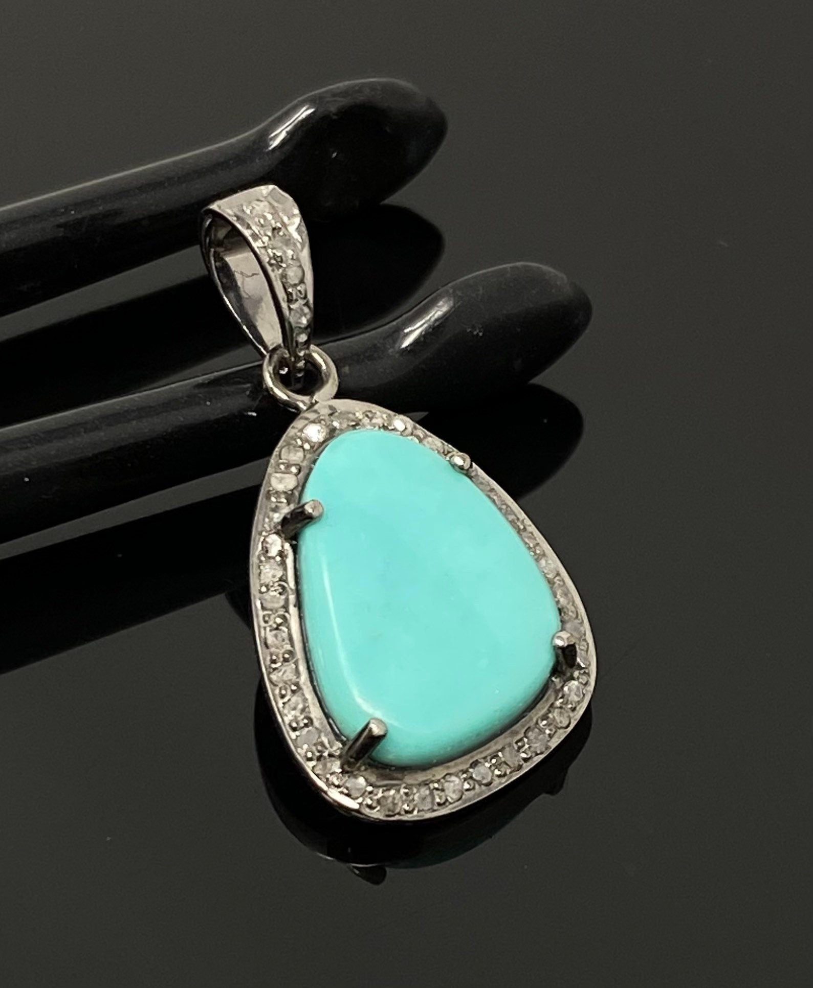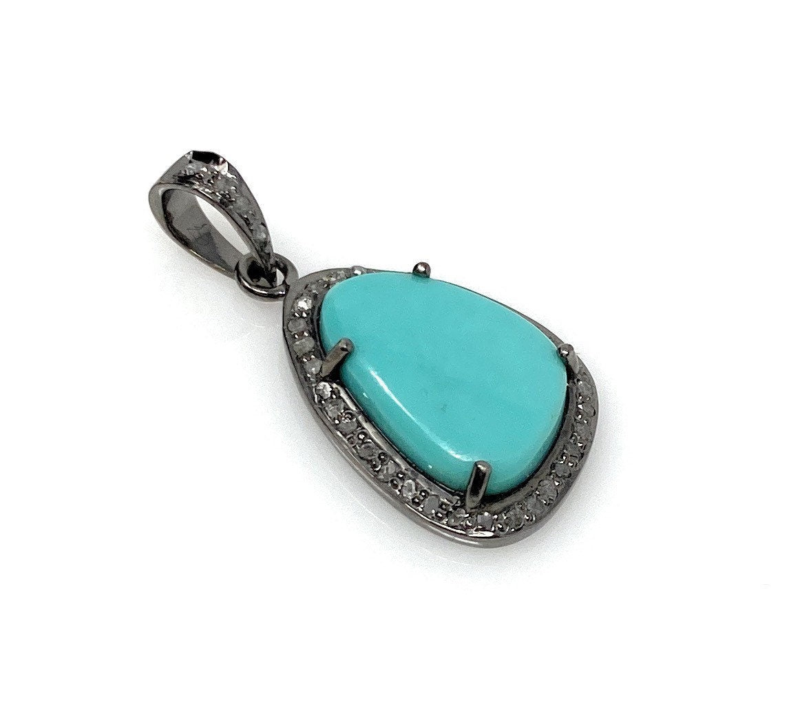 This beautiful Handmade AAA+ Grade Natural Sleeping Beauty Turquoise Fancy Shape Black Rhodium over 925 Sterling Silver Pave Diamond Pendant is an excellent choice for any occasion and makes a great gift for the loved ones.