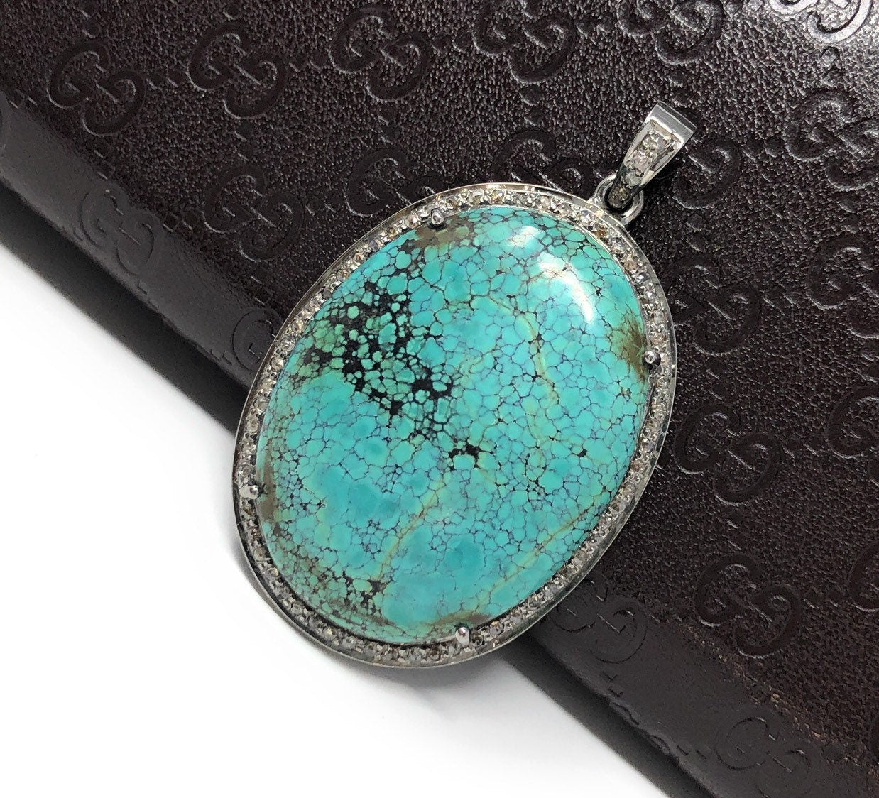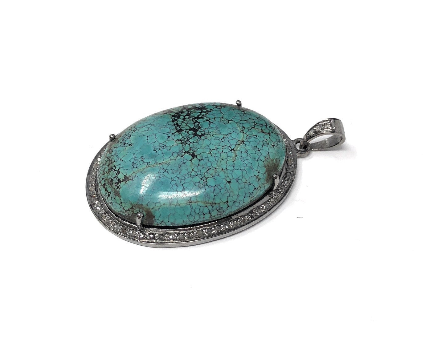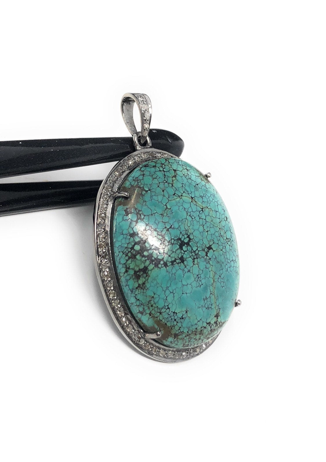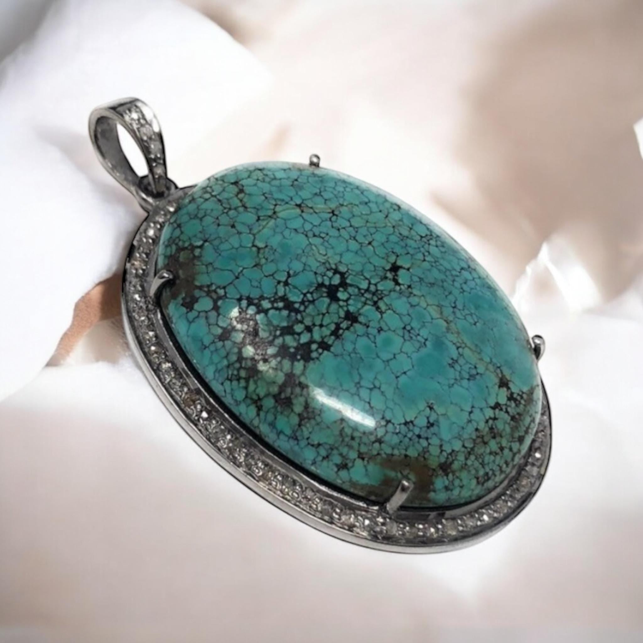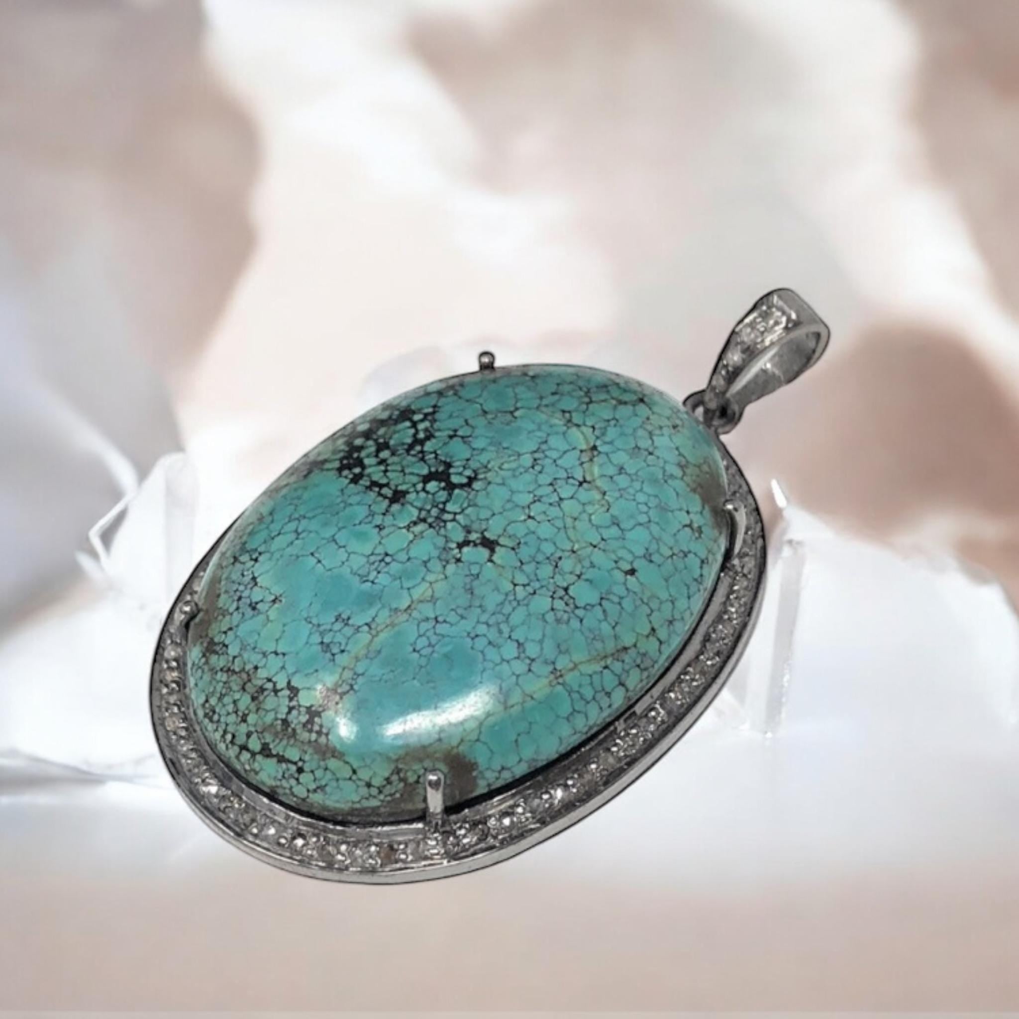 This beautiful Handmade AAA+ Grade Natural Tibetan Turquoise Large Size Oval Shape 925 Sterling Silver Pave Diamond Large Pendant is an excellent choice for any occasion and makes a great gift for the loved ones.