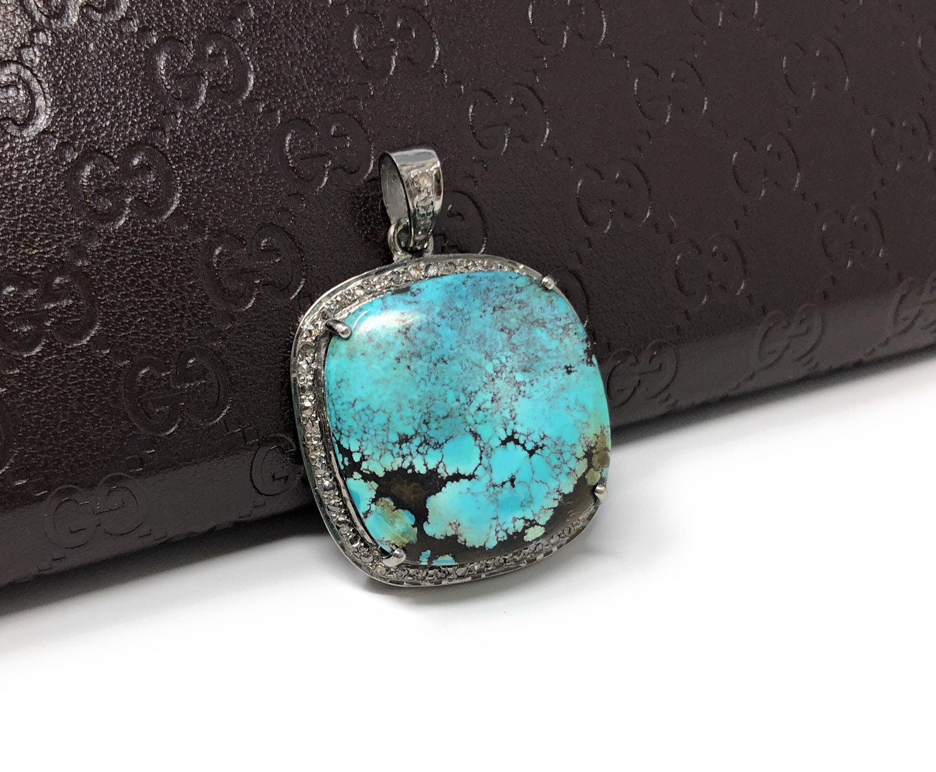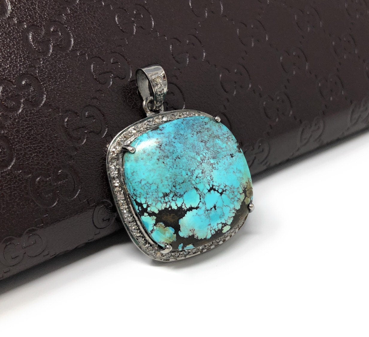 This beautiful Handmade AAA+ Grade Natural Tibetan Turquoise Cushion Shape 925 Sterling Silver Pave Diamond Pendant is an excellent choice for any occasion and makes a great gift for the loved ones.